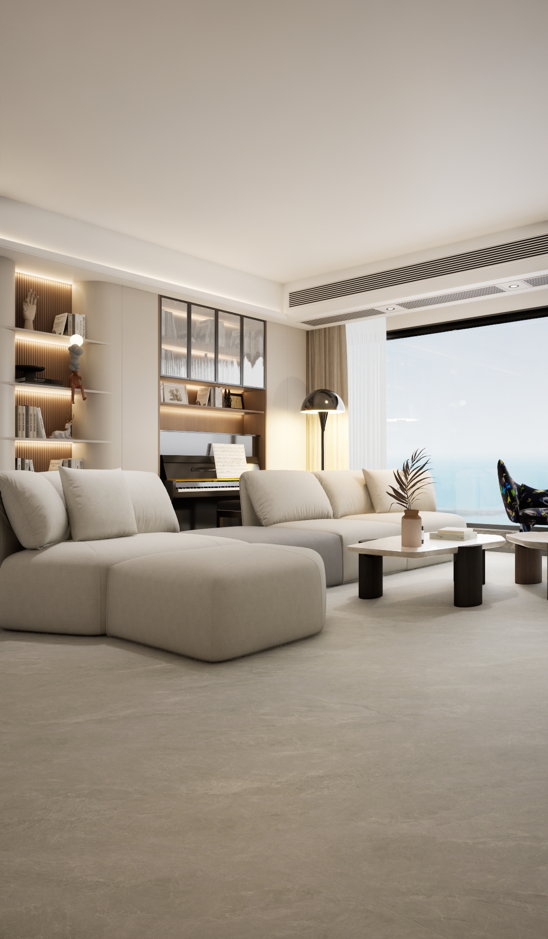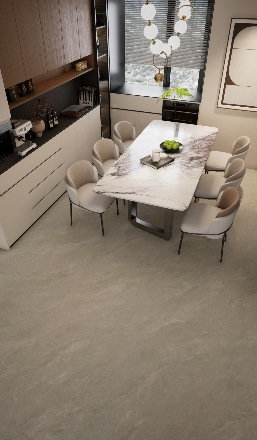 云棕灰瓷砖,撷取暮色大地与薄雾云霞的凝合。天然砂岩肌理与柔和棕灰色调交织,呈现静谧而温润的视觉层次。表面细腻的云雾状纹路灵动延伸,赋予空间自然呼吸感。兼具耐磨防滑特性,适用于营造现代简约或侘寂风格的居所氛围。