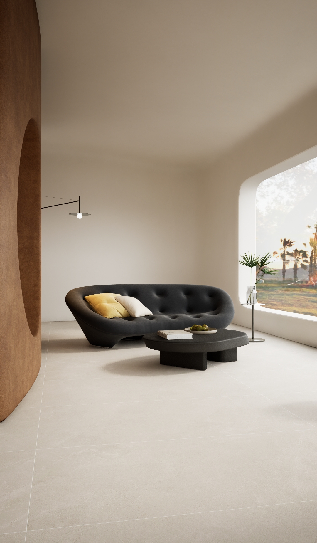 复刻天然砂岩的温暖色调与颗粒触感。表面质地坚实,肌理丰富,具有良好的防滑耐磨性。适用于营造质朴的室内外空间。其粗犷而温暖的质感,让人联想起西班牙古老建筑与充沛日照下的自然景观。