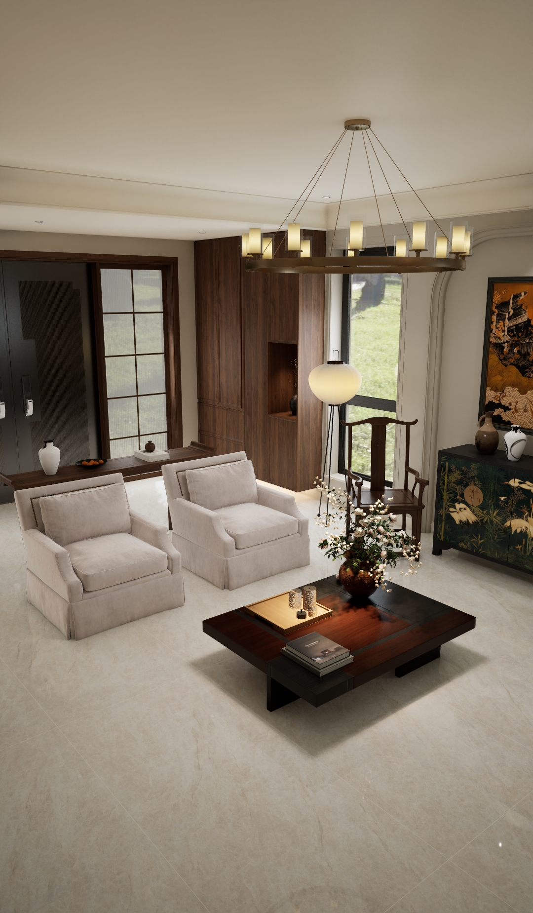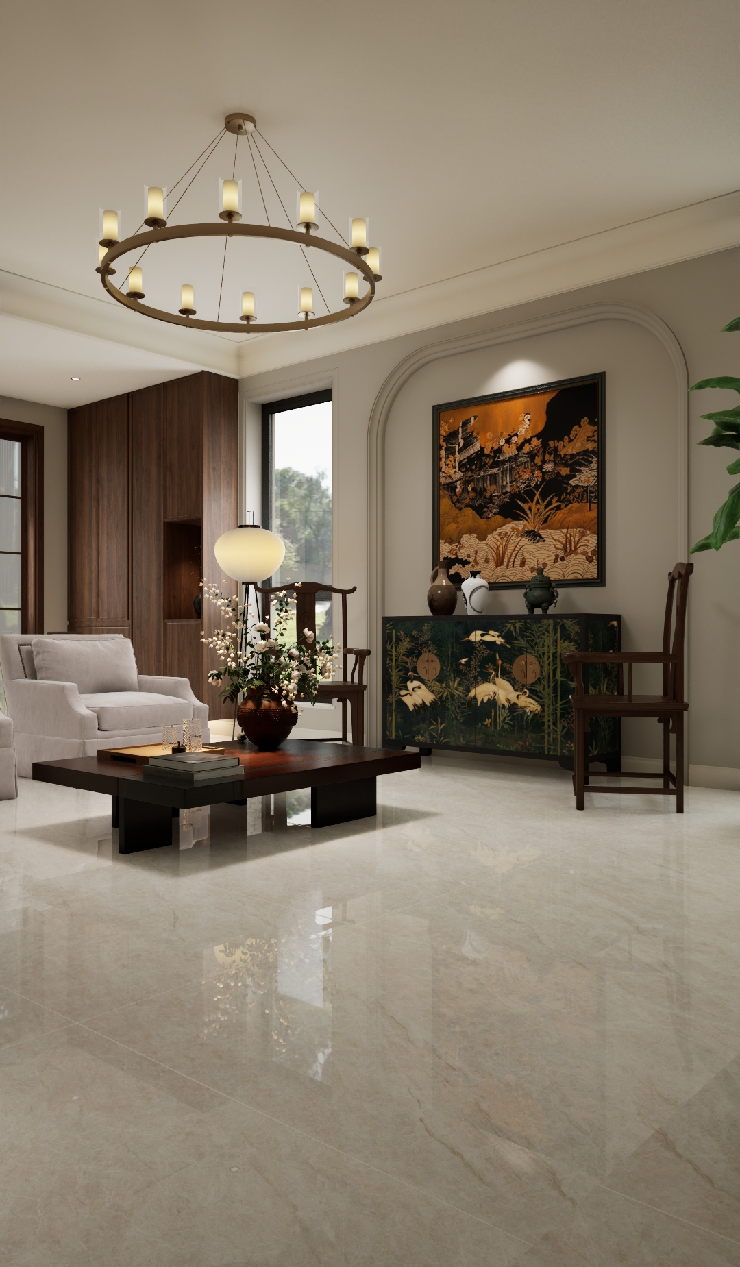 釉面呈现春水初生的翡翠色系与柔光涟漪质感。质地温润致密,防水防滑,耐磨易洁。适用于浴室、客厅等空间,能瞬间提升空间的清新感与水韵灵动。灵感撷取自春日破晓时分的湖畔。其釉面如被晨风拂过,泛起粼粼波光与朦胧绿意,将“水光潋滟晴方好”的诗意凝驻于砖面,为新中式、…