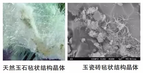 玉瓷砖表面质感及触感像玉石一样温润,是因为它内部还有近似玉石一样的“毡状结构晶体”。