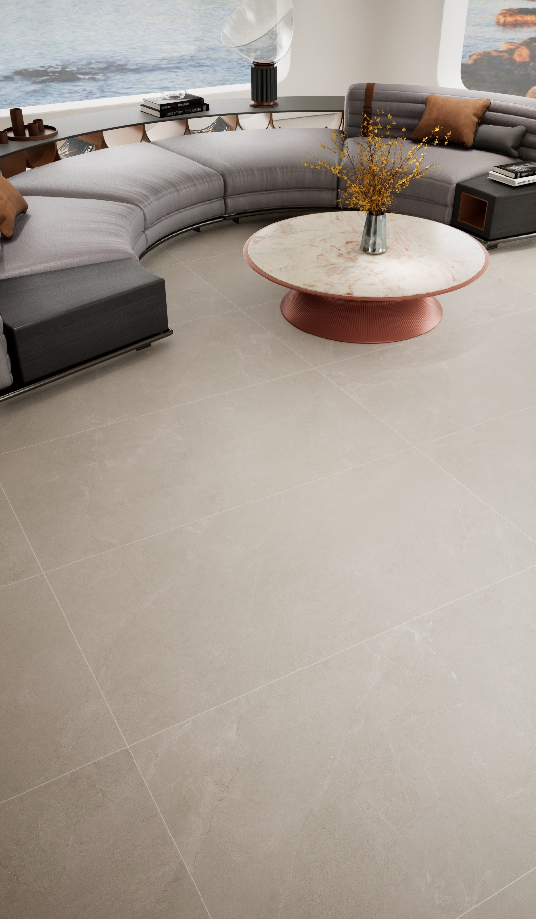 复刻天然砂岩的温暖色调与颗粒触感。表面质地坚实,肌理丰富,具有良好的防滑耐磨性。适用于营造质朴的室内外空间。其粗犷而温暖的质感,让人联想起西班牙古老建筑与充沛日照下的自然景观。