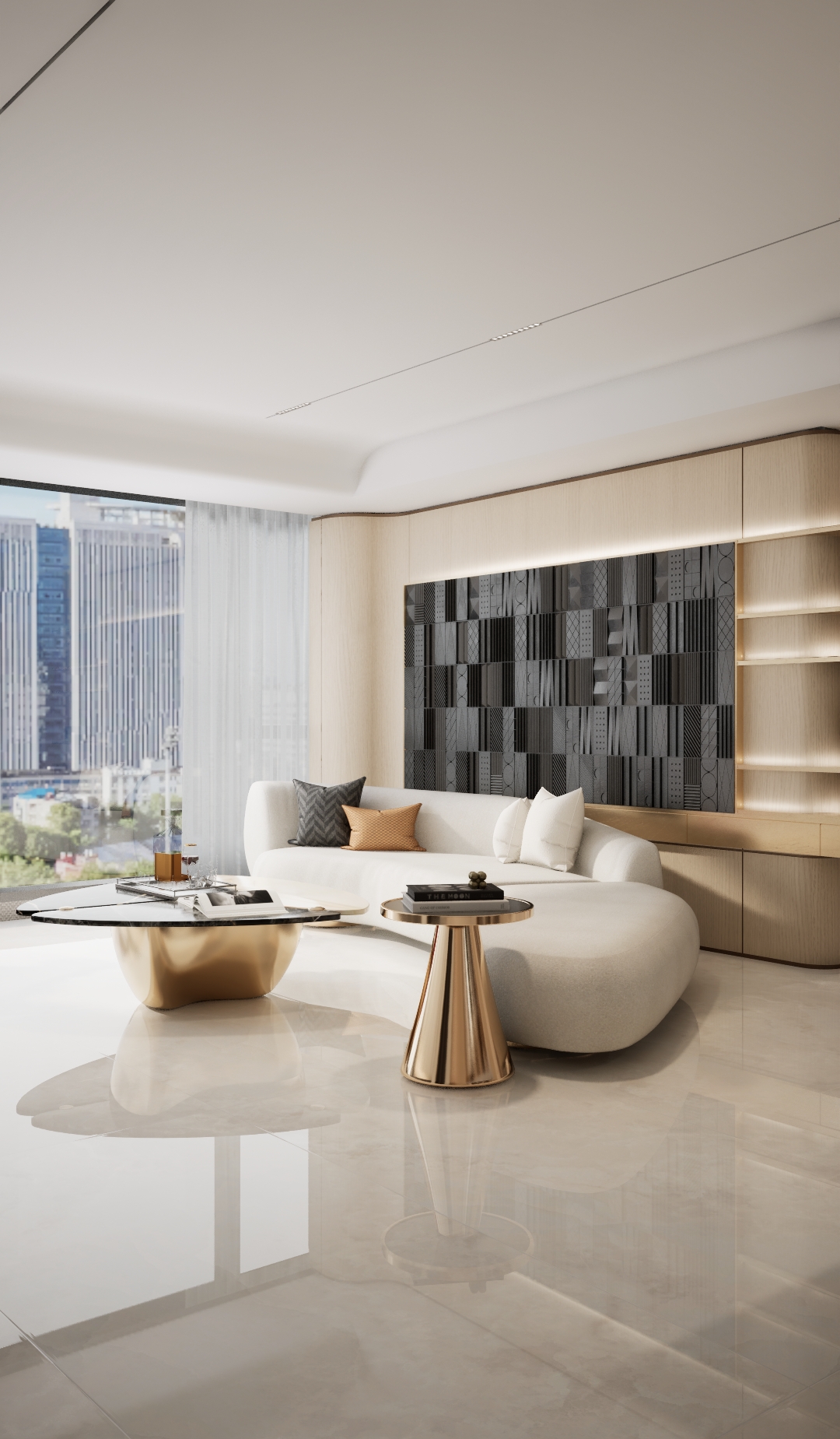 质感温润莹透,釉面蕴含天然玉石般的柔和光泽与内部纹理。硬度高、耐磨性强,兼具出色防水性。适用于客厅、书房等空间的墙面与台面装饰,提升空间雅致与轻奢感。灵感源自东方美学中的“君子如玉”。其剔透质感与内部肌理,仿佛将山水意境凝结于方寸之间。