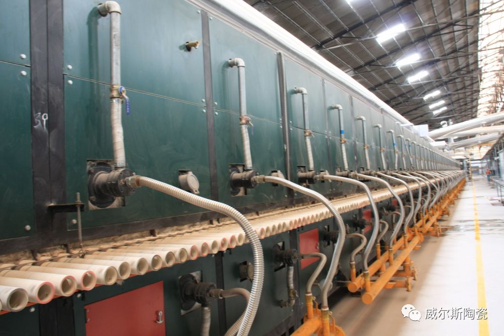 有一排排的机器给我们均匀涂上釉料