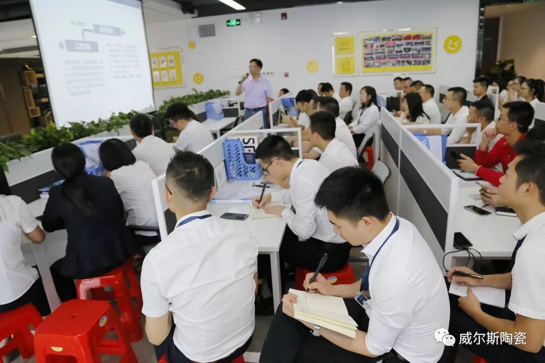 5月28日下午,在威尔斯总部展厅举办了一场题为“强化产品知识培训,深入掌握核心产品卖点——主推产品知识培训学习”月度培训会,威尔斯陶瓷品牌领导及全体总部营销人员参加了培训。