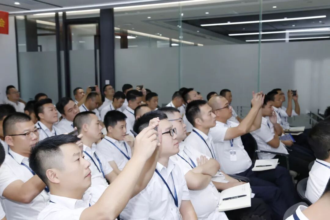 威尔斯所属集团战略工程事业部副总经理张艳新,总经理助理刘贻锋,项目部项目总监王浩钧、何奇,人力资源总监韩蓉蓉,综合服务主管何敏健等领导莅临威尔斯全球营销中心现场培训指导。威尔斯陶瓷品牌总经理李基华、品牌销售副总经理黄新峰、刘井华等领导出席培训会。