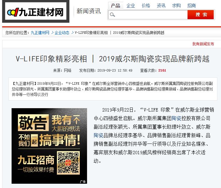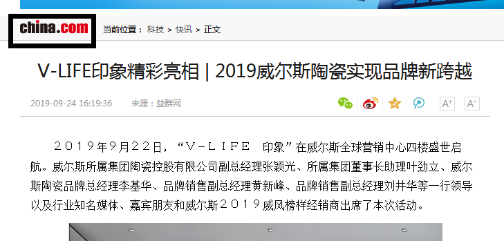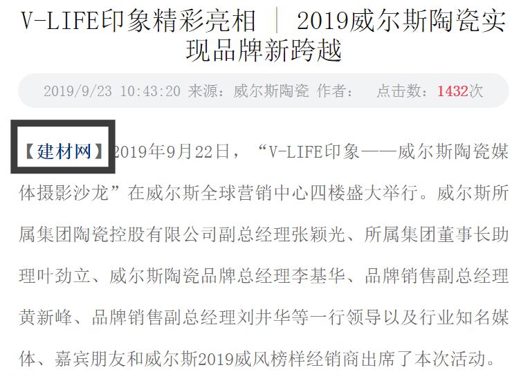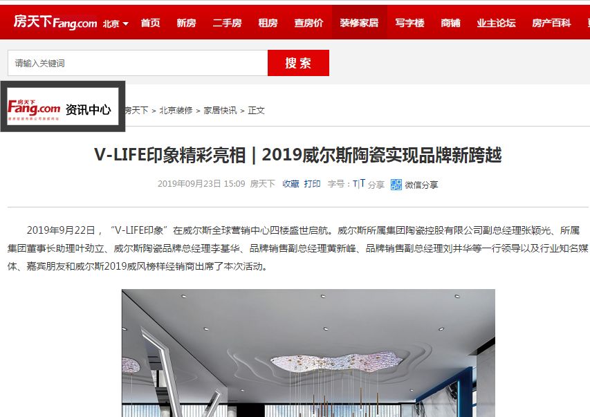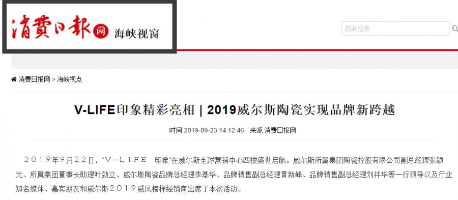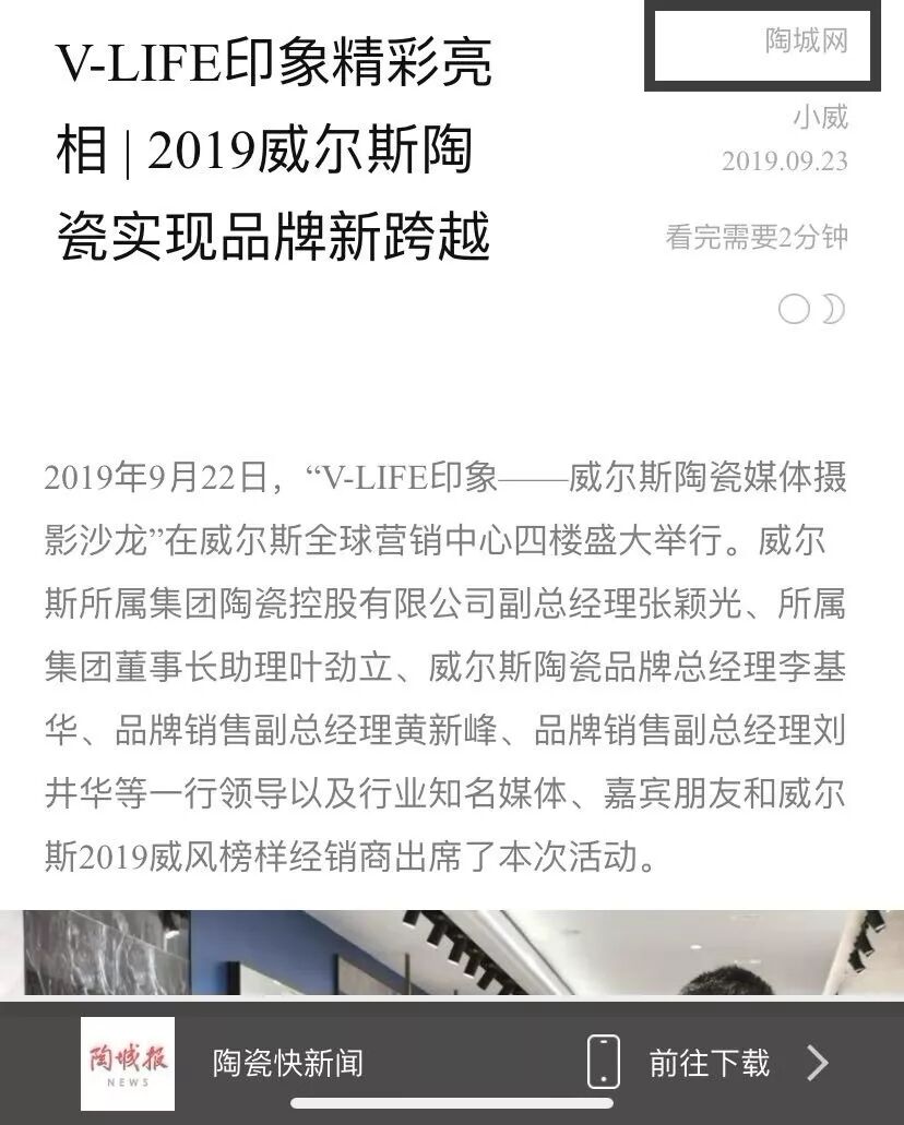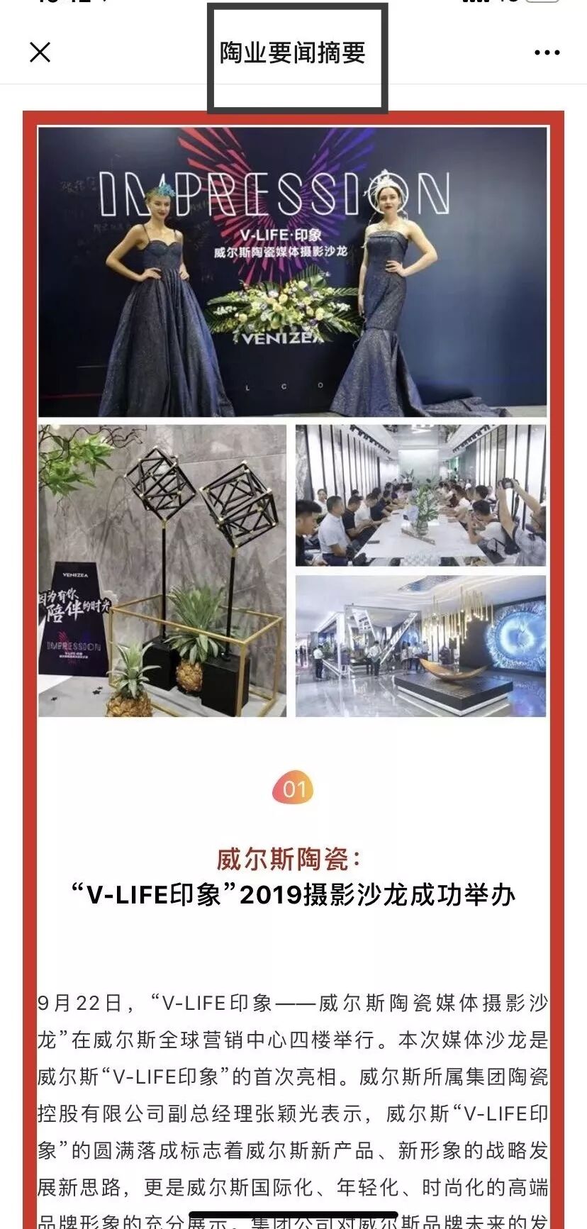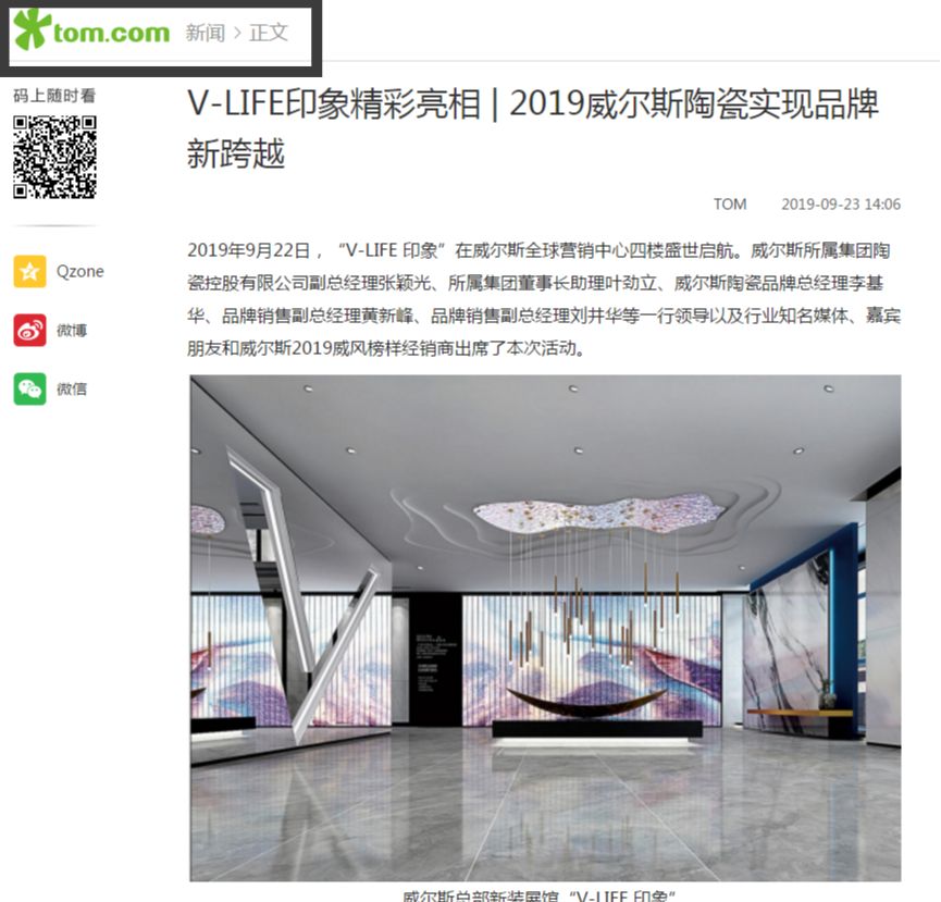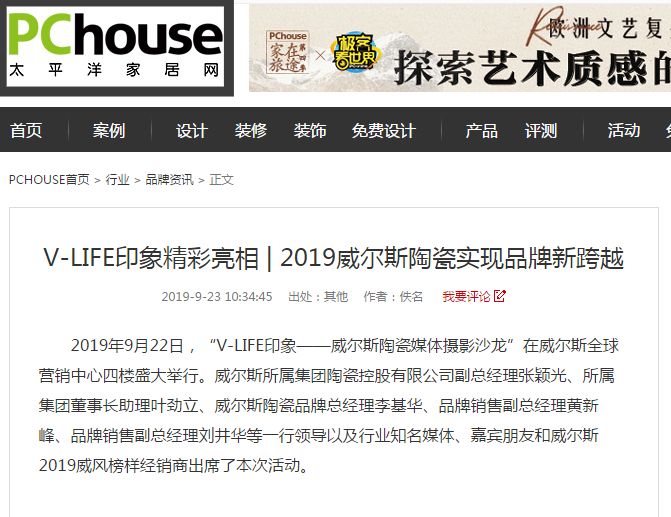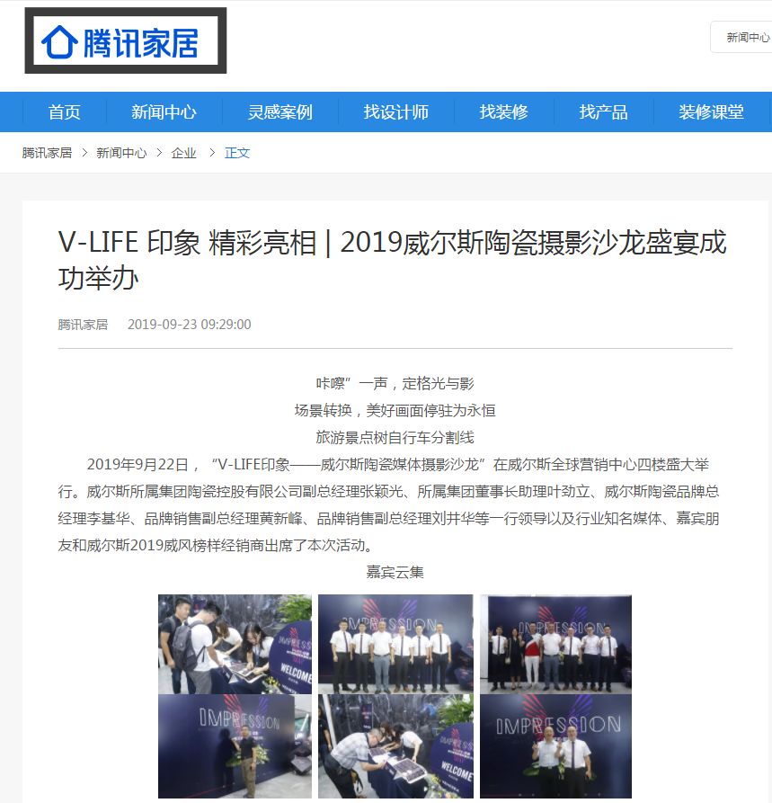 陶瓷媒体圈众多嘉宾朋友共同参与见证了此次“V-LIFE印象”的亮相,近百家主流媒体纷纷对此进行了追踪报道,霎时间霸占了行业内外各大媒体的版位、甚至头条。