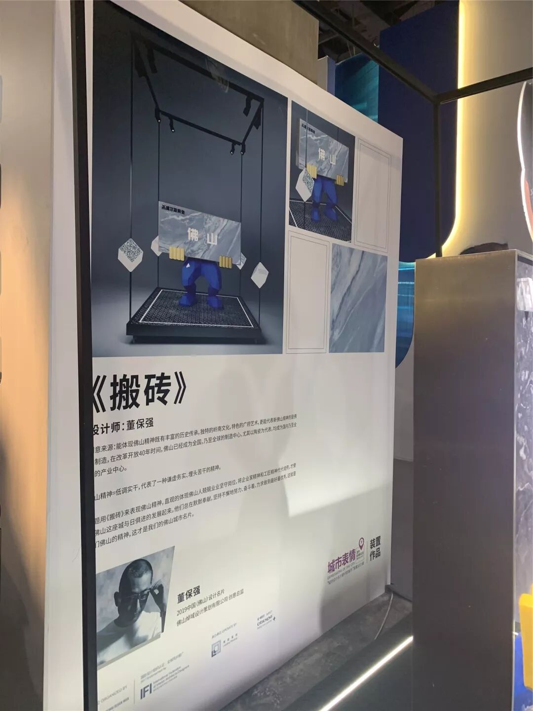 原来这正是由威尔斯陶瓷与设计师董保强先生携手打造的佛山城市名片《搬砖》艺术装置,它在不久前在由广州设计周主办的“2019中国城市设计名片”评选活动脱颖而出,成为12大代表城市之一,并将在12月5-8日广州设计周期间进行展示。
