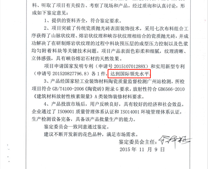 发明专利就是核心竞争力,是威尔斯陶瓷强大自主研发能力的直观表现。凭借这一竞争优势,威尔斯陶瓷科技创新硕果累累,通过权威部门鉴定的高水平创新成果就有29项。其中,多项创新成果属于突破性的国际先进甚至国际领先水平项目。