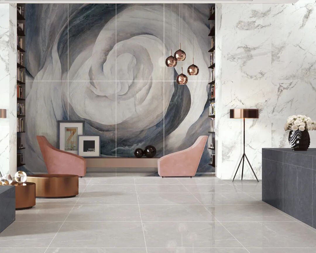 威尔斯通体珍石系列产品集品质与创新于一体,升级运用高新技术,实现了大理石材肌理再生,产品坯釉相融,通体美学、表里如一,厚重的真石质感由内到外完美呈现,石材效果质感媲美真石,可自由进行拉槽、倒角、磨边等加工应用,诠释“现代美学”的生活方式,打造极致用户体验。