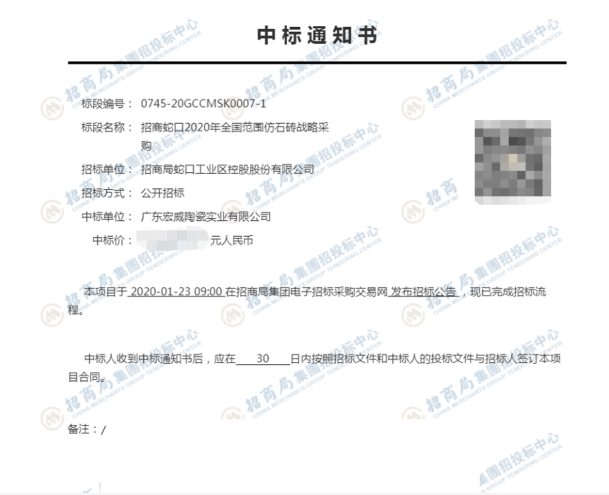△招商局蛇口工业区控股股份有限公司中标通知书