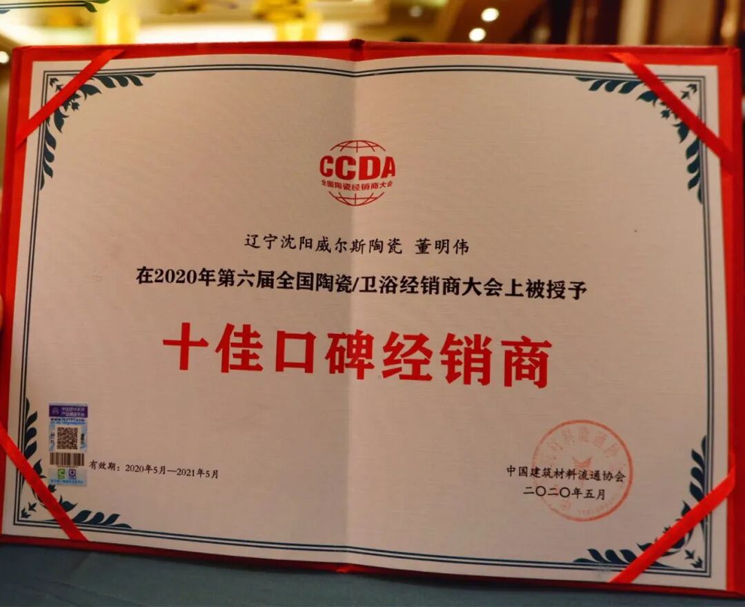 威尔斯陶瓷终端经销商也在本次颁奖典礼上载誉而归,获得“陶瓷行业十大经销商”、“十佳口碑经销商”等荣誉称号。这不仅仅是对威尔斯陶瓷终端的肯定,更是威尔斯战略布局在终端的成功体现。