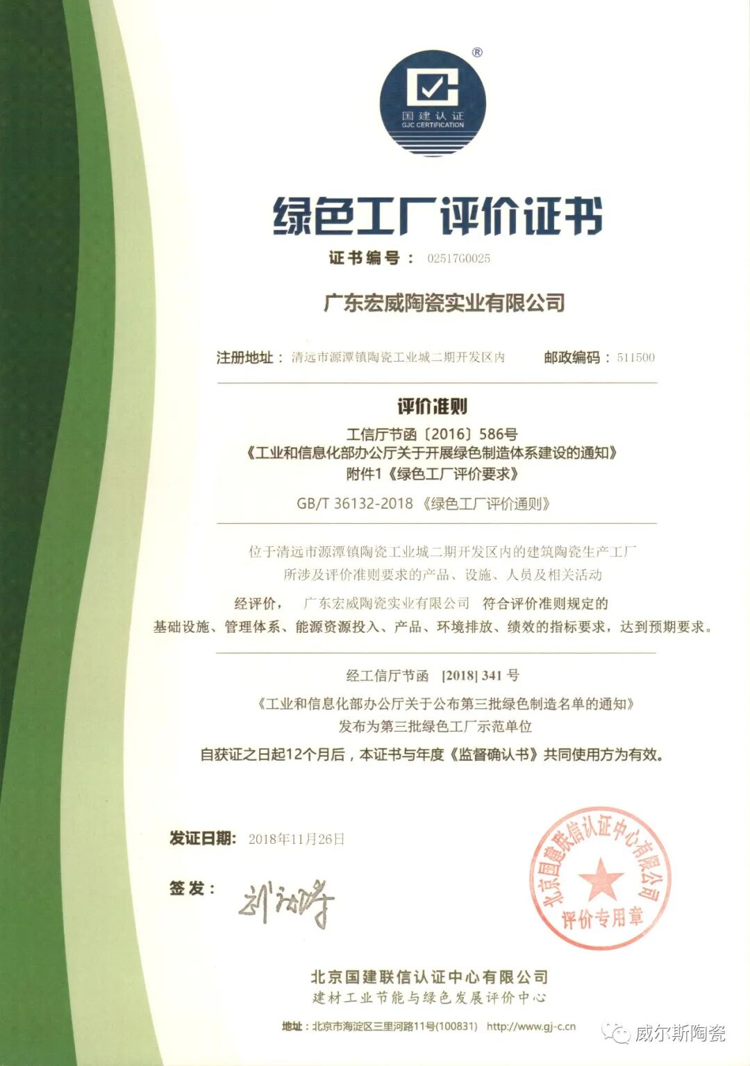 6月12日,威尔斯陶瓷生产基地广东宏威陶瓷实业有限公司顺利通过清洁生产审核验收。威尔斯陶瓷在提高节能环保效益、减少能源消耗方面的努力和工作成效获得了政府部门的肯定。
