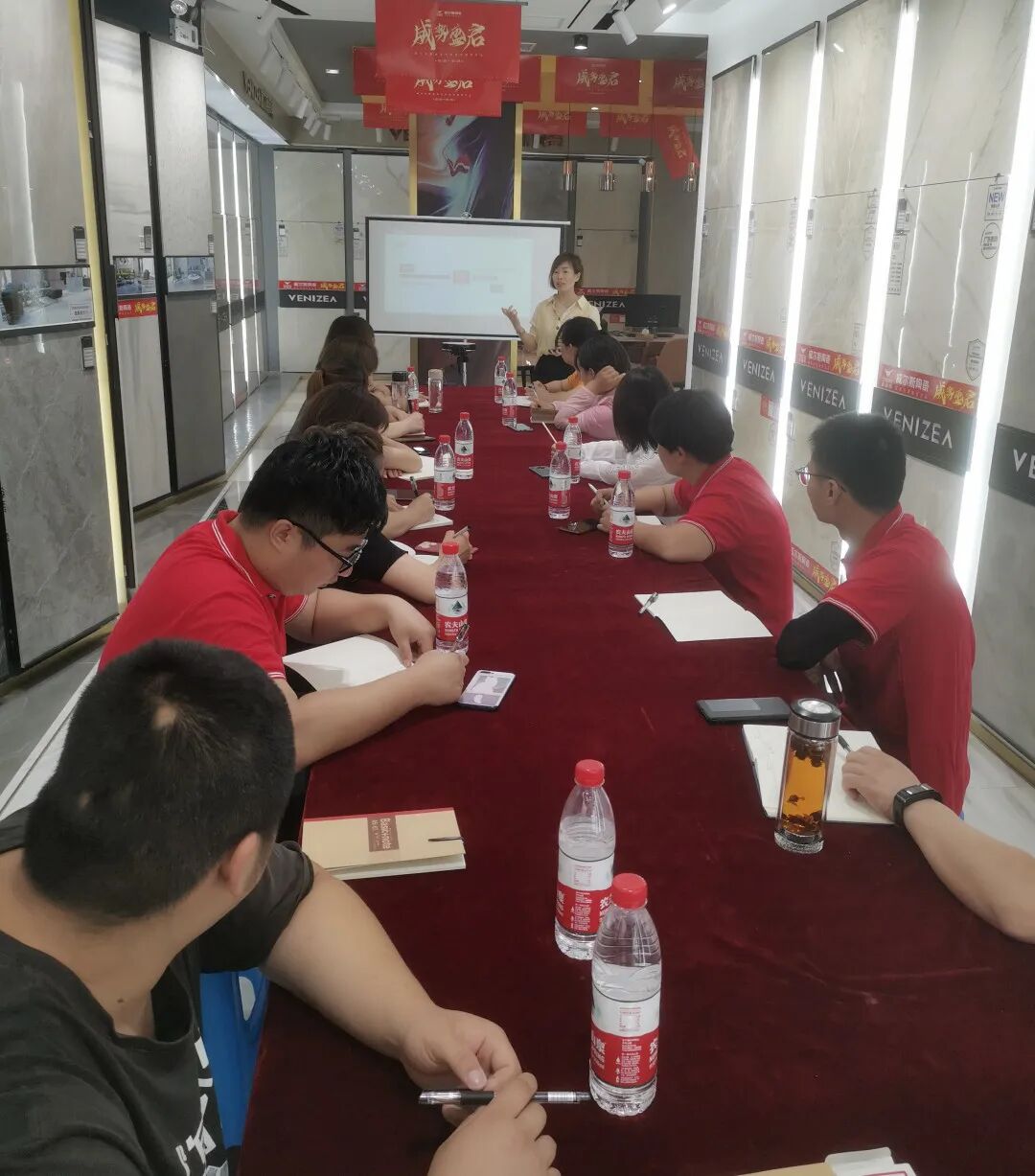 课上学习是收获,课下交流亦是收获。各站参训学员,在课下交流中非常积极主动,他们三五一群,围绕产品花色、竞品对比、产品展示、渠道拓展等方面开展了热烈的分享与讨论。他们在交流中学习,在争论中成长,在成长中完成自己的蜕变。