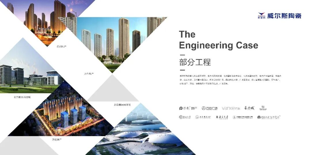 威尔斯陶瓷产品质量长期稳定,服务完善,是众多高级会所、星级酒店、宾馆、高级住宅小区室内装饰材料的理想之选,被北京奥运网球馆、北京航天科技城、北京国务院休养中心、北京英国大使馆、西南科技大学、湖南省湘雅人民医院、万科房地产、保利地产、万达地产等数百个工程项目选用,赢得了市场的广泛认可和赞誉。