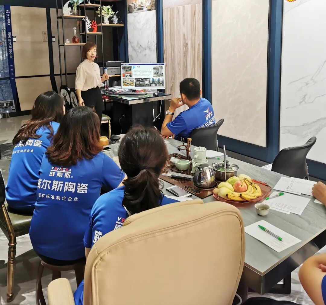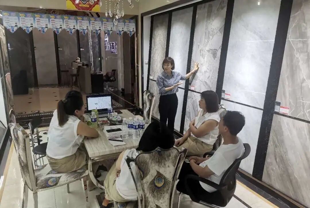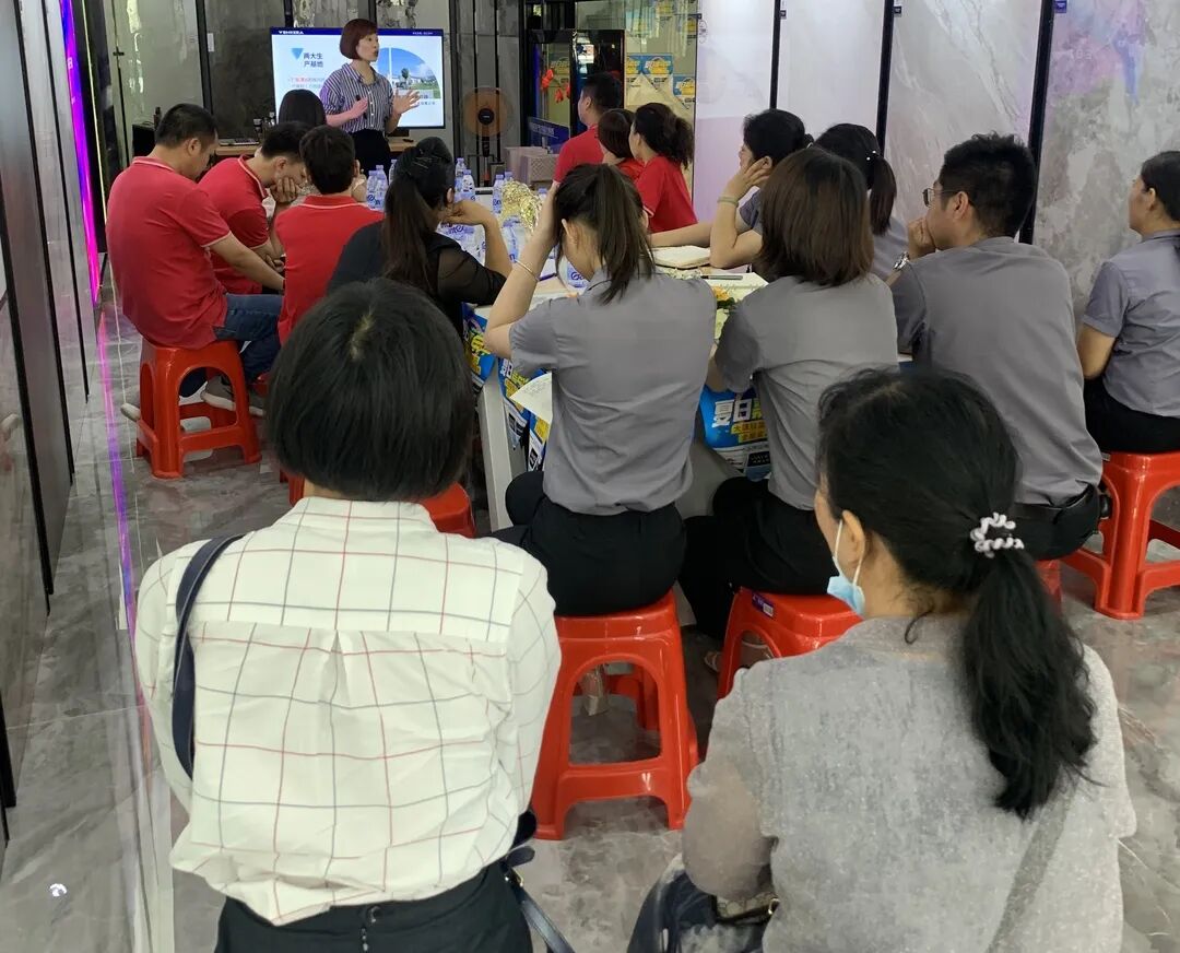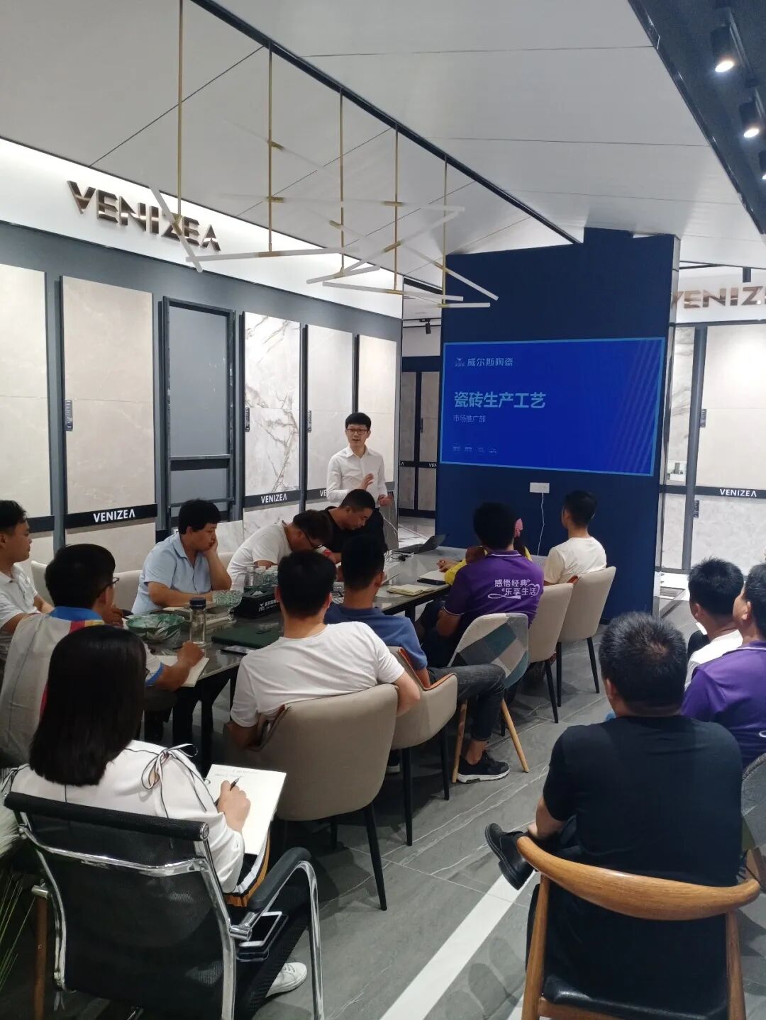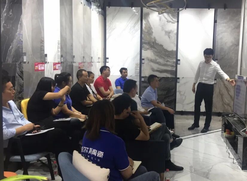 在产品专业知识讲解上,看瓷砖讲瓷砖,在竞品对比中,坚定威尔斯瓷砖品质实力;在产品专业知识讲解上,通过实际疑问,产品话术结合销售技巧,深入浅出,易于参训人员更好的“拿来即用”;在解析顾客类型时,结合门店具体情况,通过参观路线设置、障碍设置等,易于参训人员更好的服务不同类型的客户……
