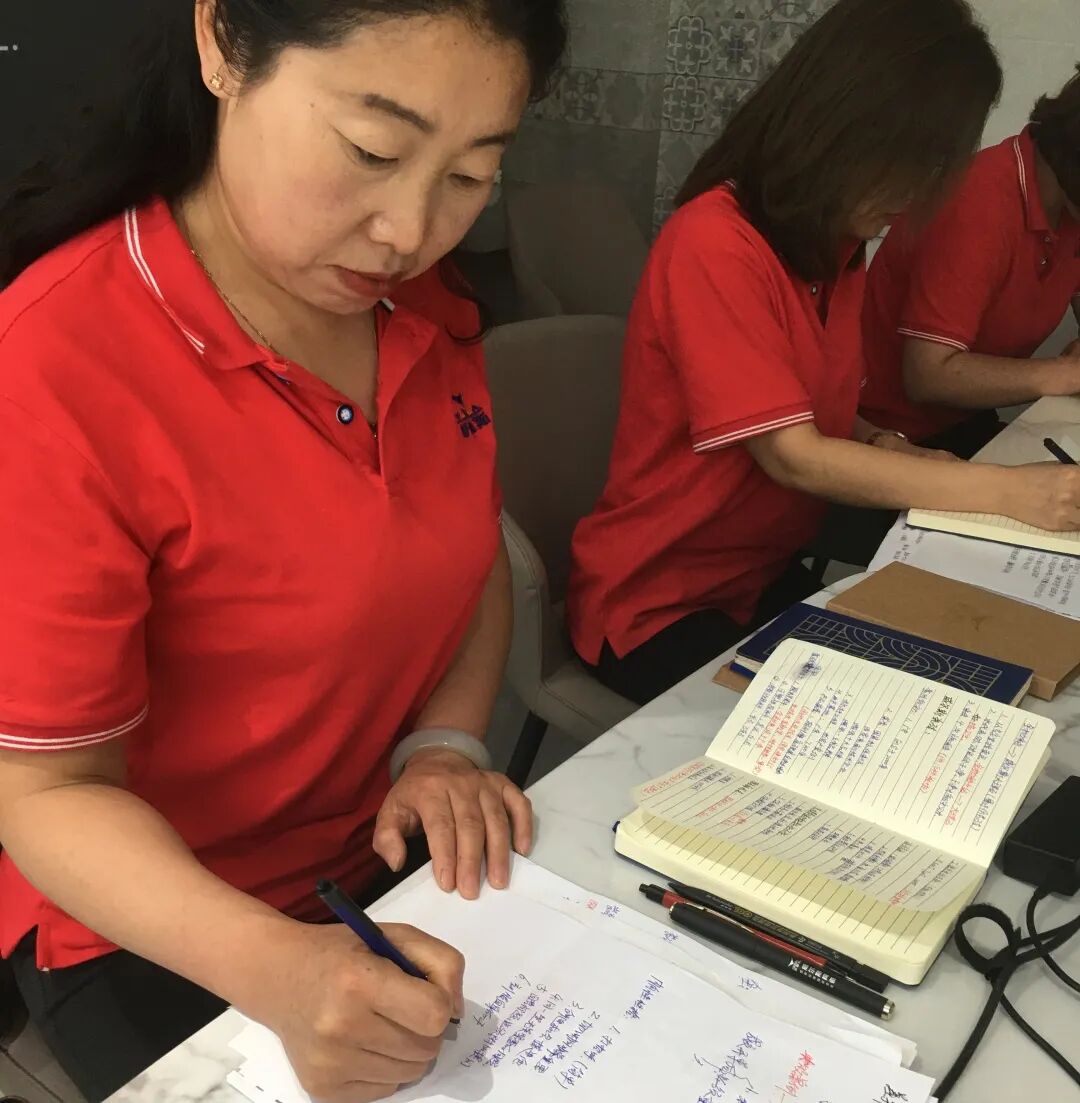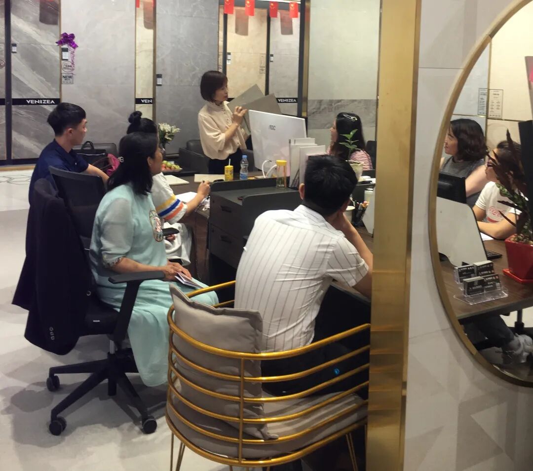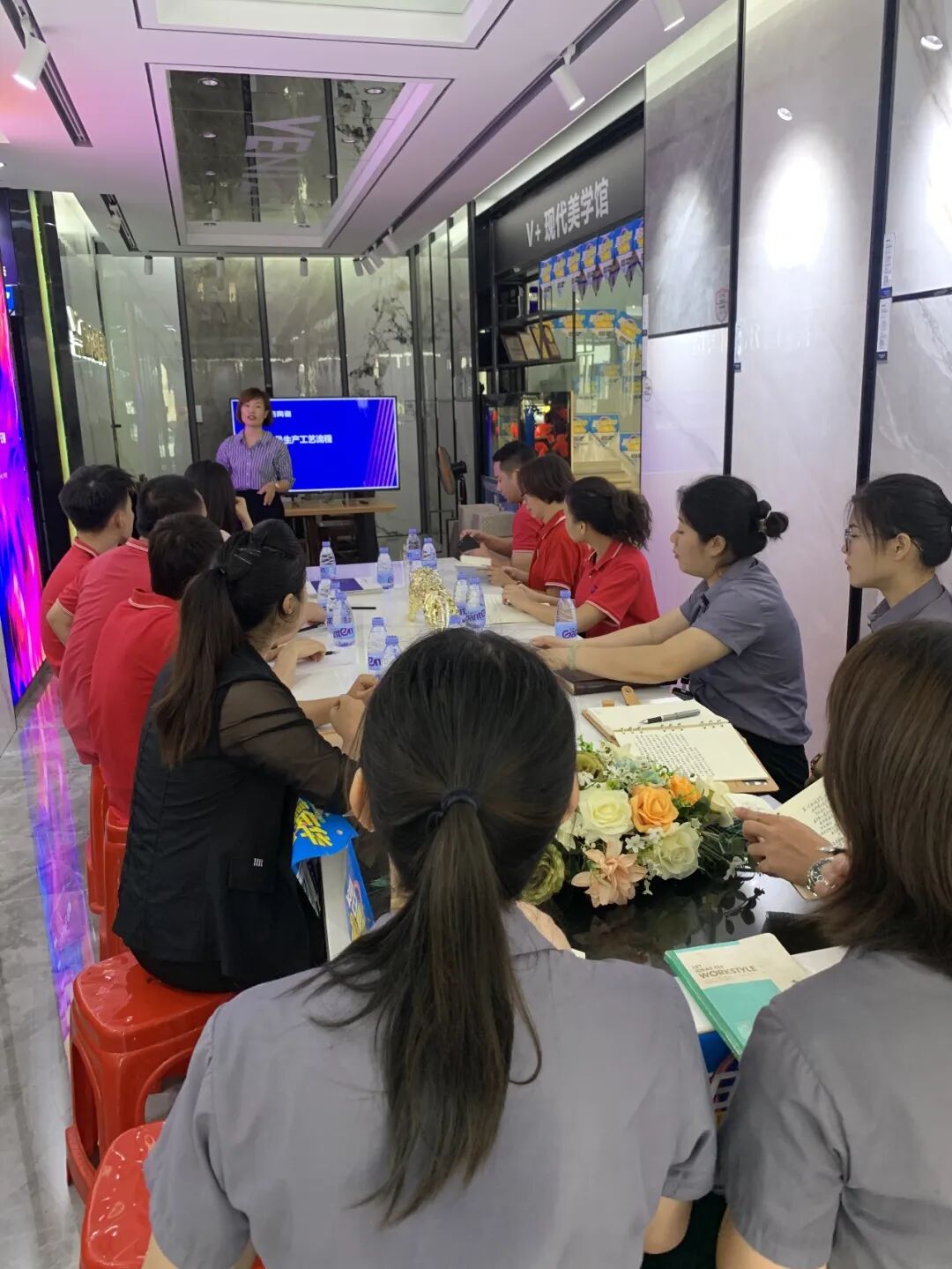 在课程设计上,朱老师力求让第一次接触瓷砖的家人能听懂,让销售精英受到启发。学员们认真笔记、拍照保存,在积极思考问题的同时,积极回答老师的提问。在现场互动答疑环节中,大家踊跃提问,积极互动,在反思自身销售经历中,错误得以纠正,不足予以弥补。