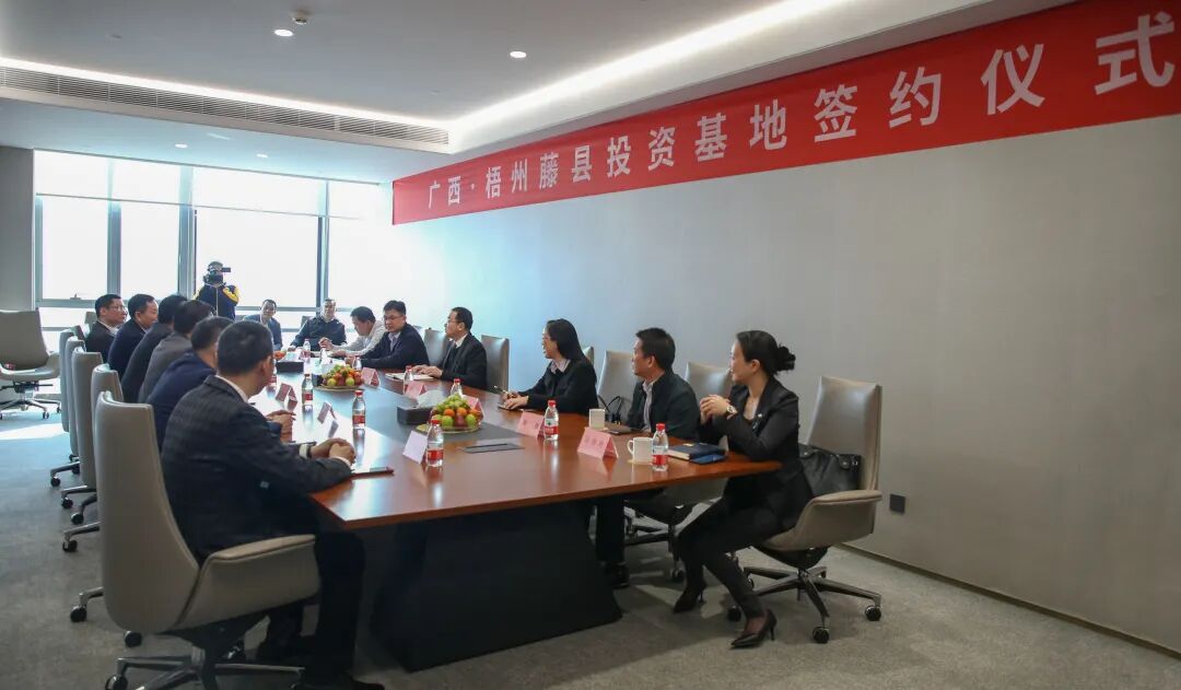 △ 2月3日上午,广西梧州藤县人民政府代县长杜诚与威尔斯所属集团董事长梁桐灿共同签署投资协议。
