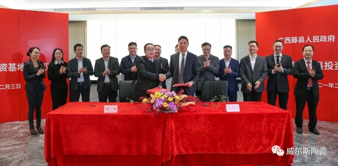 二月春来早,部署正当时。威尔斯陶瓷所属集团正式签约广西藤县,产业版图持续扩张的同时,将始终坚持、深化推进“多创新+高水平创新”、“通过创新实现绿色环保”、“创新技术广泛覆盖产品结构面”等指导方针;凭借科技创新实力,引领中国陶瓷行业不断革新发展,持续为更多战略合作伙伴及客户朋友源源不断提供高品质材料供应。