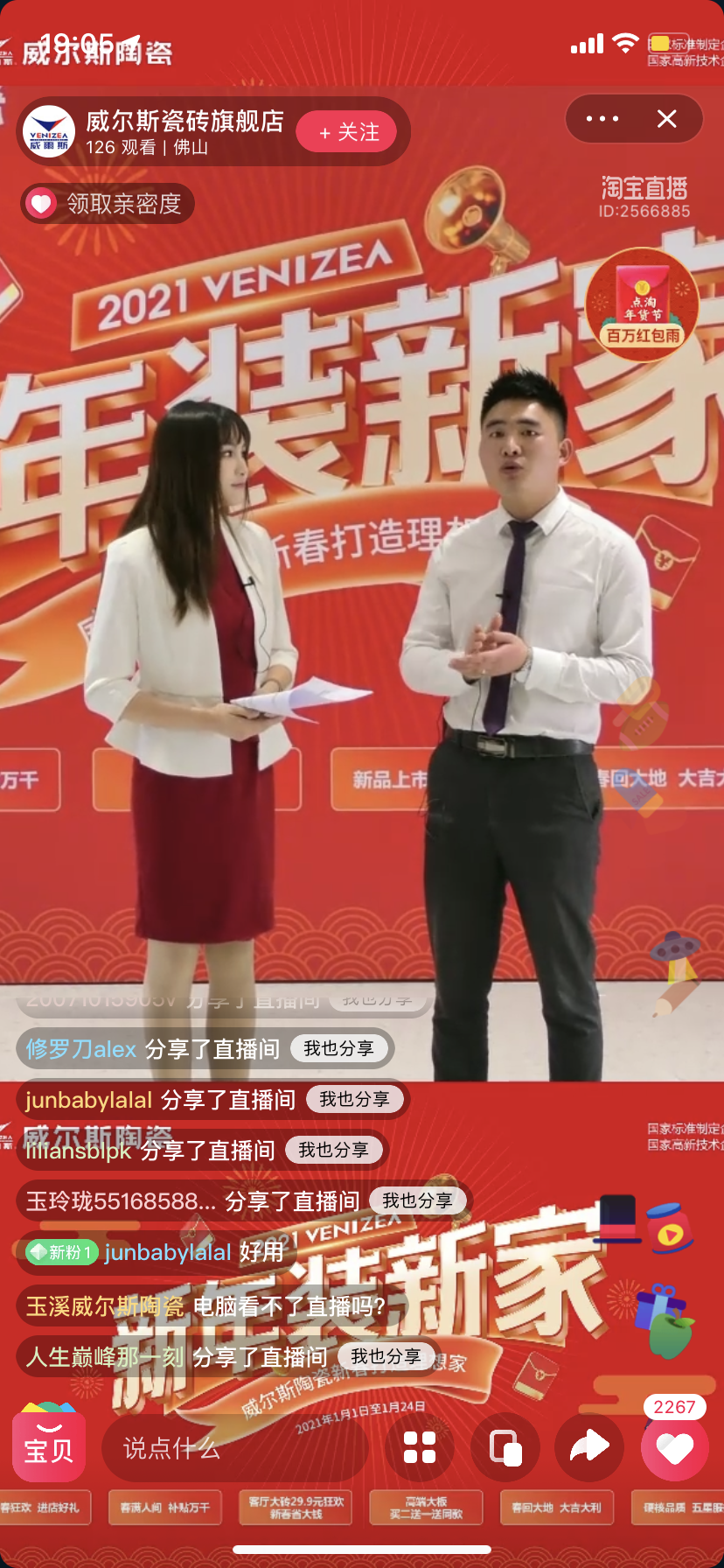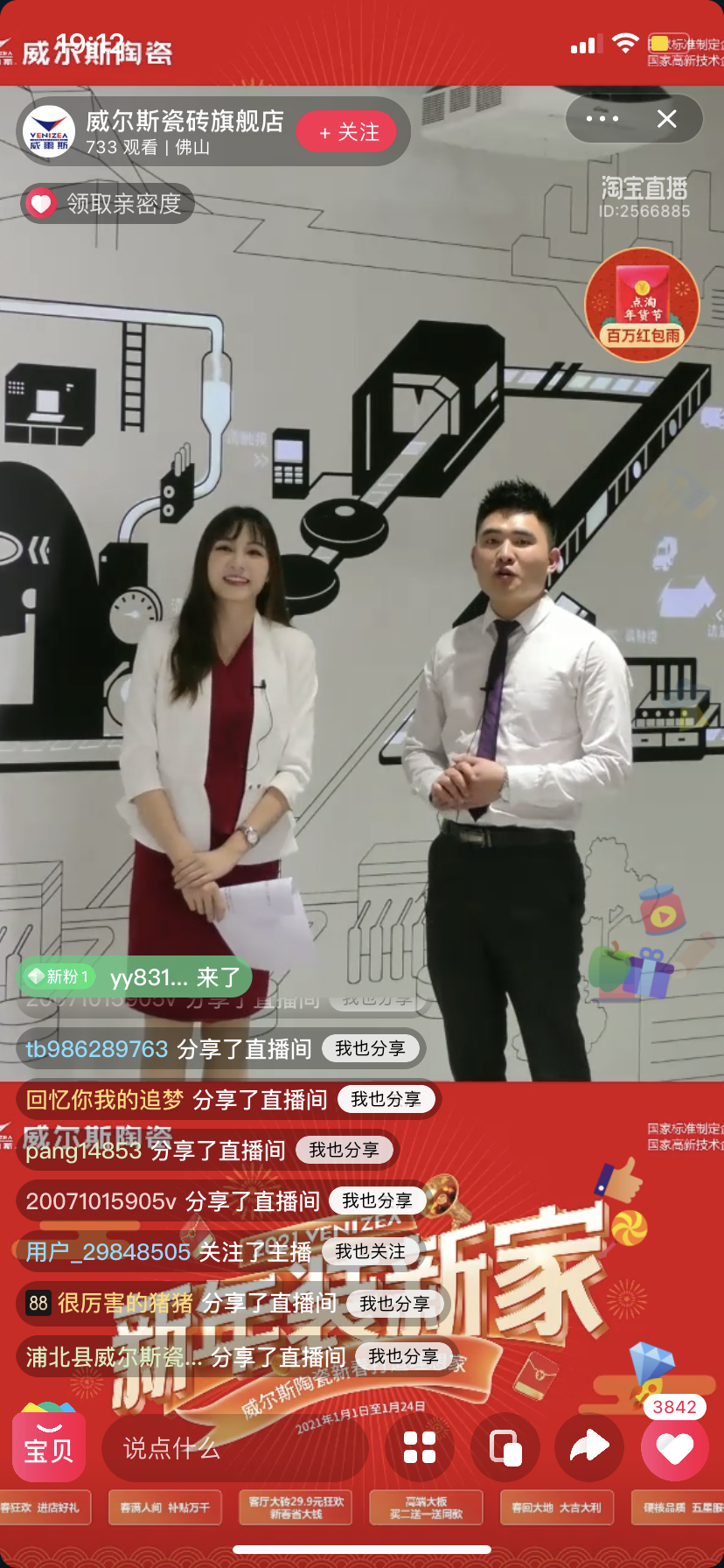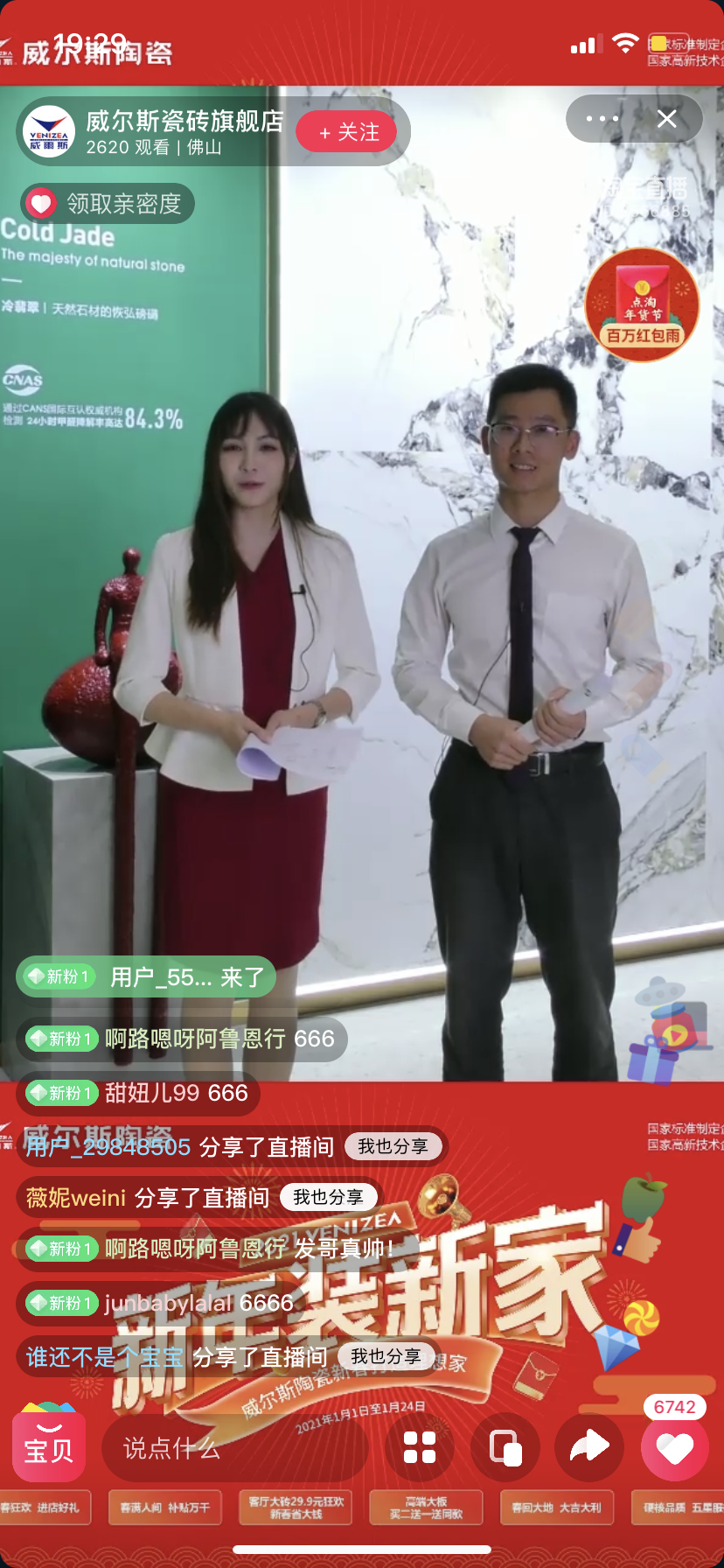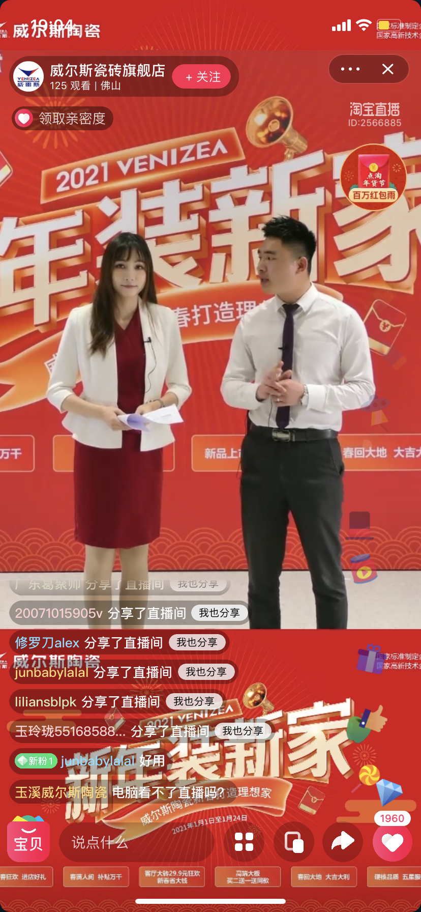 1月22日晚,威尔斯陶瓷天猫旗舰店“新年装新家”迎新春送福利总部直播圆满收官!众多网友参与直播互动点赞,掀起一番新春狂欢热潮。