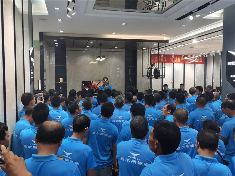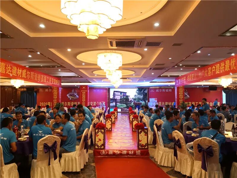 整个全州共有五六百个瓷砖施工师傅,每年,粟海荣都会举办高级工匠交流会,通过现场技术交流,展示店面新品,介绍市场流行风格,以及告诉他们如何对产品进行搭配,在宾主尽欢中打响了口碑。