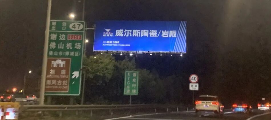10月,全新威尔斯高速公路高炮广告上线,以覆盖大湾区高速枢纽核心的路段为主,紧握广佛黄金出入口要点,持续提升品牌曝光率。