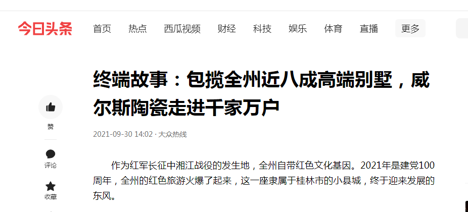 从线下到线上,从区域到全国,从广泛覆盖到精准匹配,威尔斯陶瓷/岩板向全国展示出了高端、优质的形象,在多方面铺开品牌传播渠道,提升知名度的同时,也为品牌终端经销商迅速打开市场,扩大终端销售提供了有力支持。