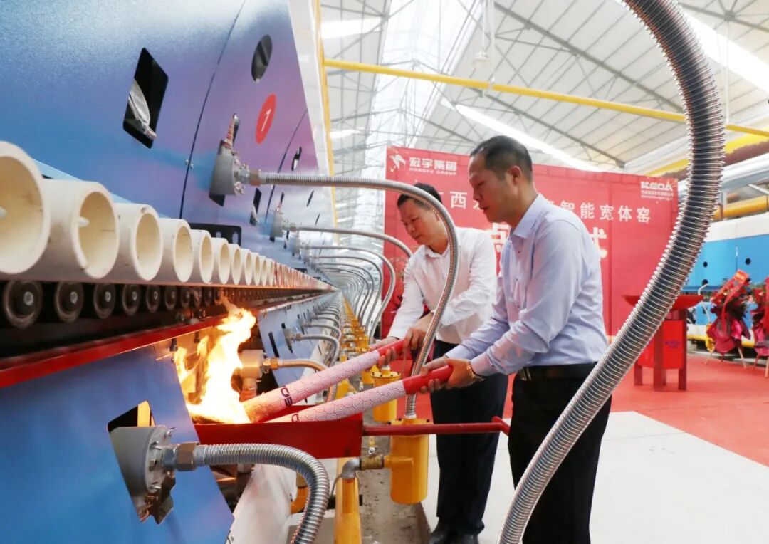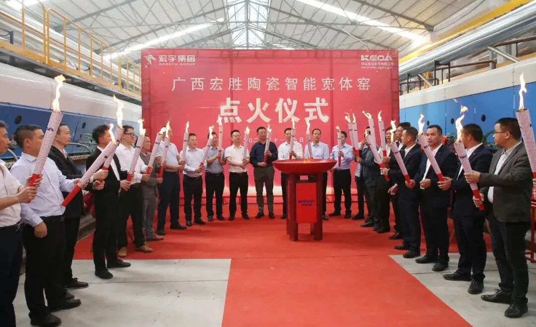 11月6日,威尔斯所属集团全新生产基地落成暨智能宽体窑点火仪式,在广西宏胜陶瓷生产基地盛大举行,藤县中和陶瓷园区党工委副书记、陶管中心主任李勇辉,藤县县委组织部副部长陈浩昌,威尔斯所属集团副总经理谭铝光,广西宏胜陶瓷有限公司厂长李勇等领导共同见证了这一历史性时刻。熊熊火焰升腾,标志着威尔斯的发展驶入新的里程,将在绿色智能、高质量发展的道路上持续稳步迈进。