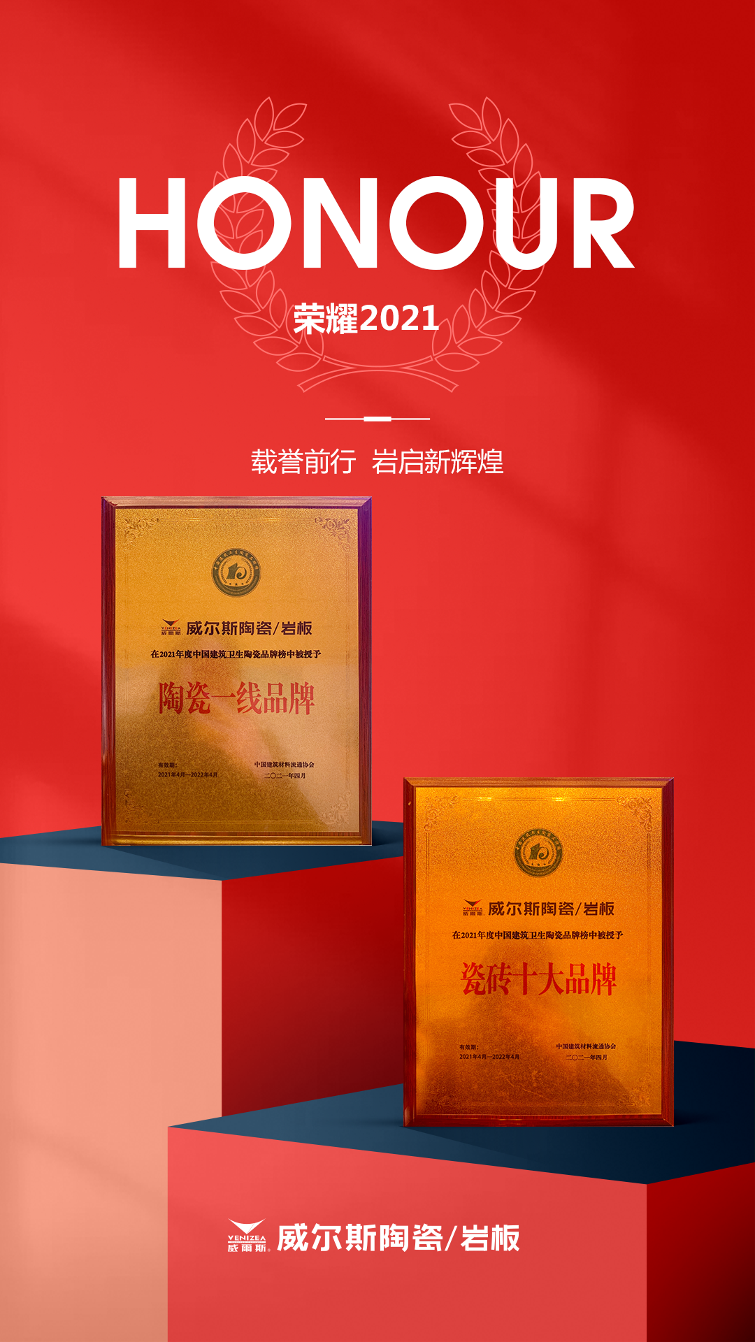 岁月不居,时节如流。2021年即将过去,2022年崭新而来。威尔斯陶瓷作为陶瓷行业集产品研发、生产和销售于一体的优质陶瓷品牌,多年以来率领科研团队不断探索,在科技的发展中不断自我突破壮大,研发出众多优质产品,荣获多项国家及行业荣誉。2021年,在全体威尔斯人的努力下,我们取得了非凡收获,是付出让我们倍感荣耀,让我们一起领略威尔斯的荣耀光芒。