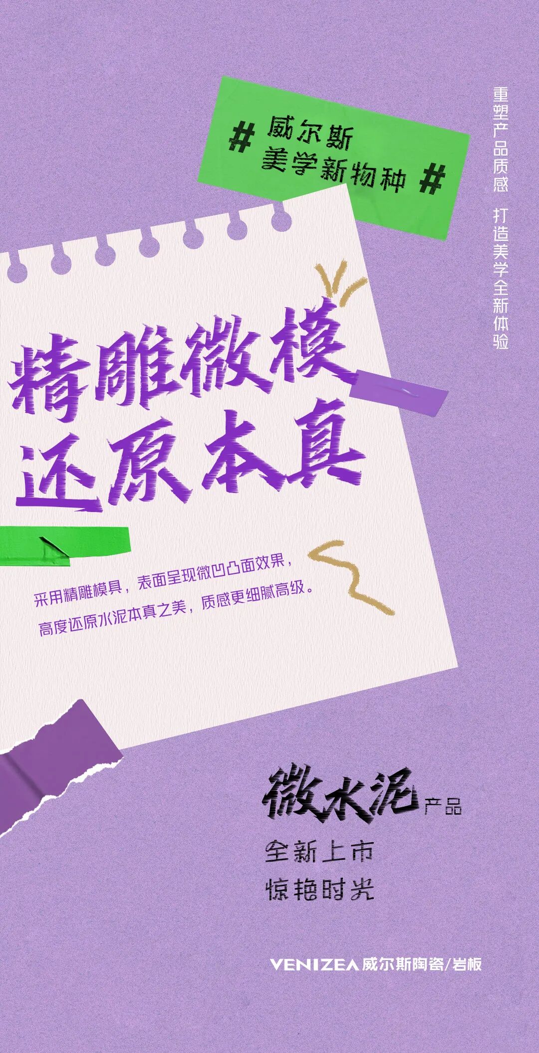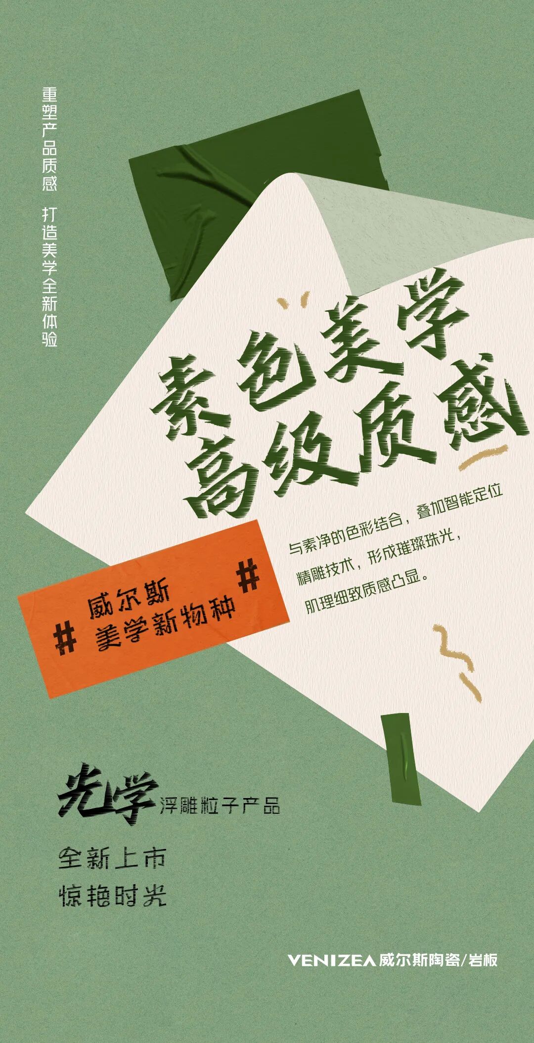 好产品是打造用户口碑的重要基础。而出奇制胜的潮流产品,则是竞争中拥有绝对优势的必备利器!2021年,威尔斯陶瓷紧抓消费痛点,深挖细分市场,强化升级产品结构,“光学浮雕粒子”与“微水泥”两大潮流产品系列应运而生!