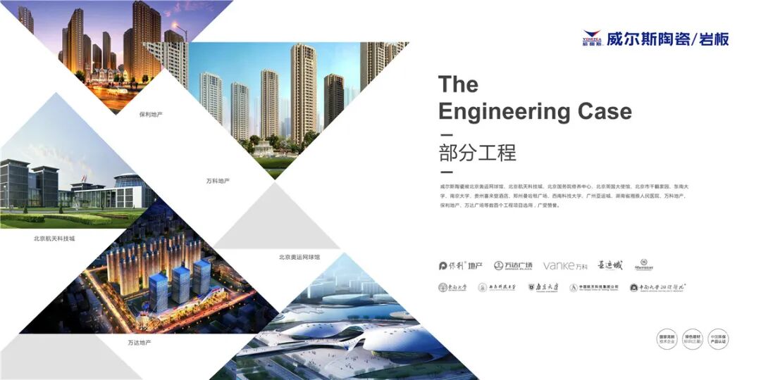 威尔斯陶瓷产品质量长期稳定,服务完善,是众多高级会所、星级酒店、宾馆、高级住宅小区室内装饰材料的理想之选,被北京奥运网球馆、北京航天科技城、北京国务院休养中心、北京英国大使馆、西南科技大学、湖南省湘雅人民医院、万科房地产、保利地产、万达地产等数百个工程项目选用,赢得了市场的广泛认可和赞誉。