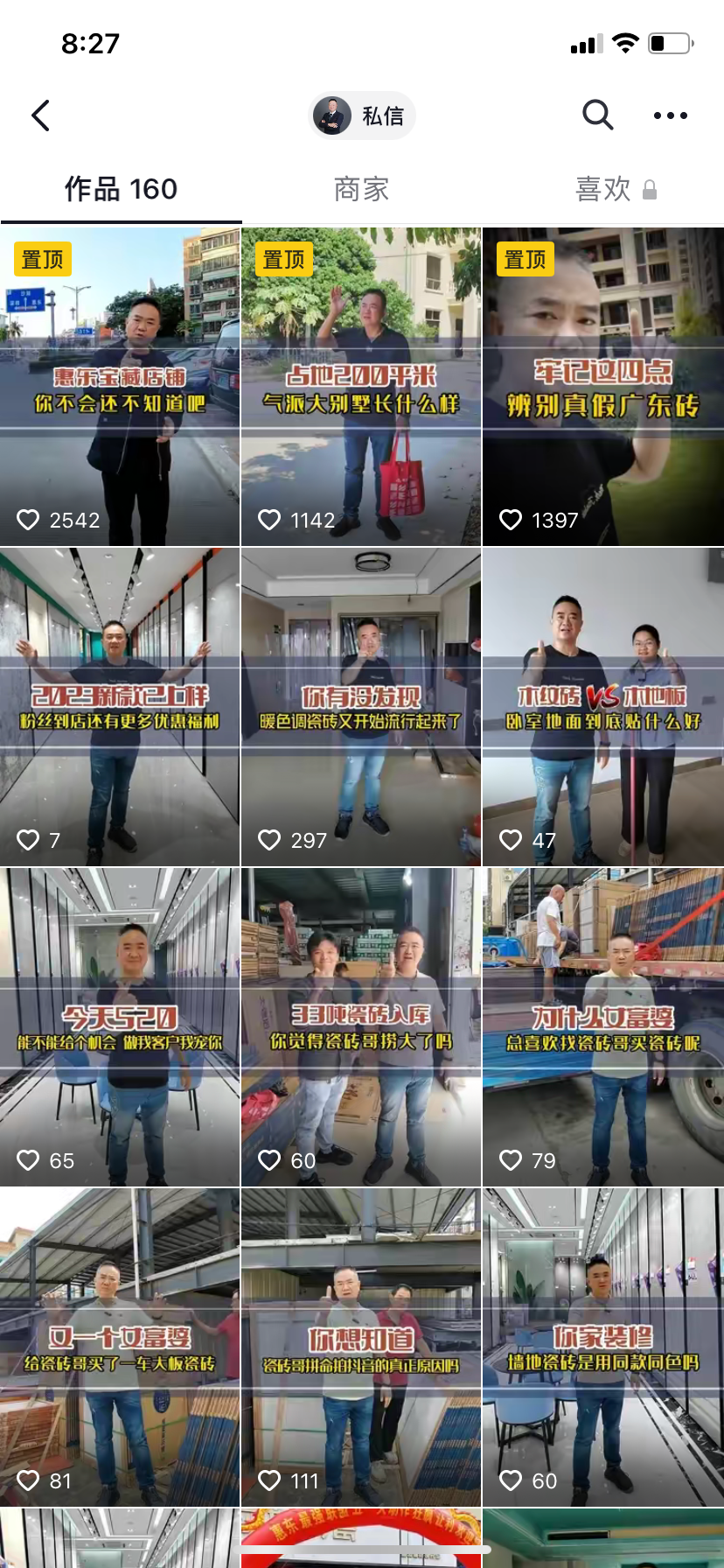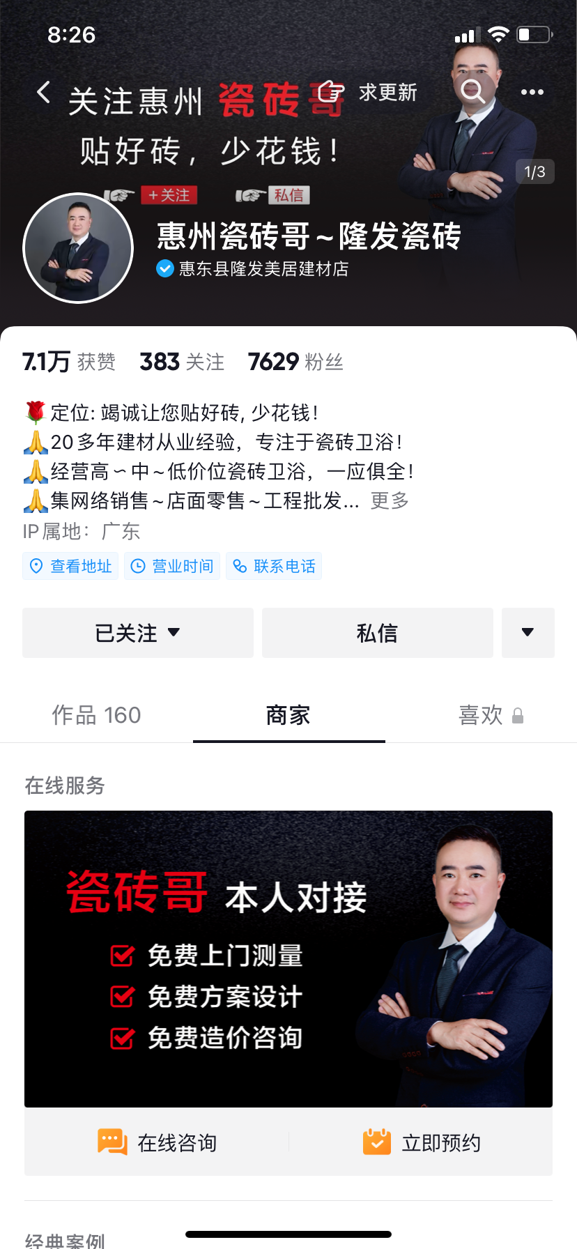 此外,在抖音等新媒体平台的运营上,瓷砖哥徐锦添也制定了更长远、细致的规划。“接下来,我还会下功夫运营抖音平台,打造网红IP形象。不止抖音,我还会带领团队发力快手、小红书、视频号三个当下最火的新媒体平台,迎合新时代消费者的购物习惯,打通线上获客渠道,继续精耕惠州瓷砖市场。”