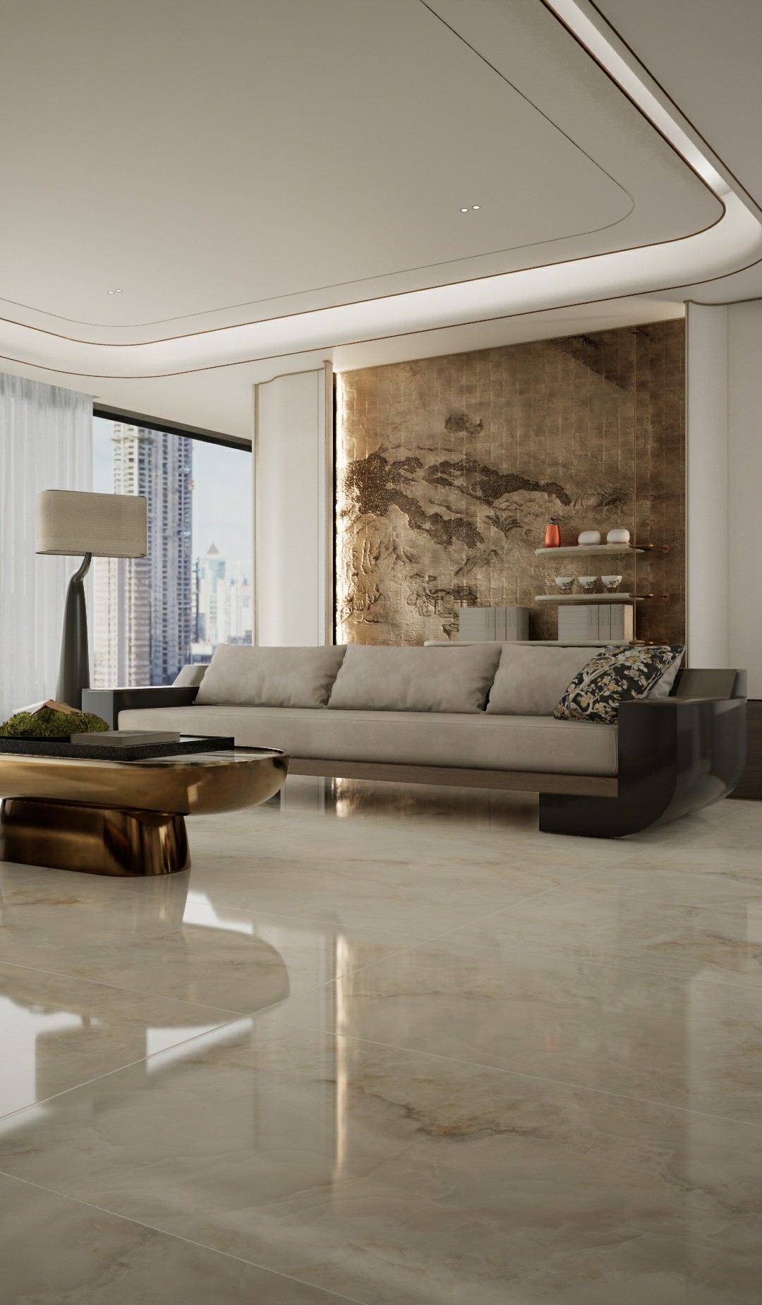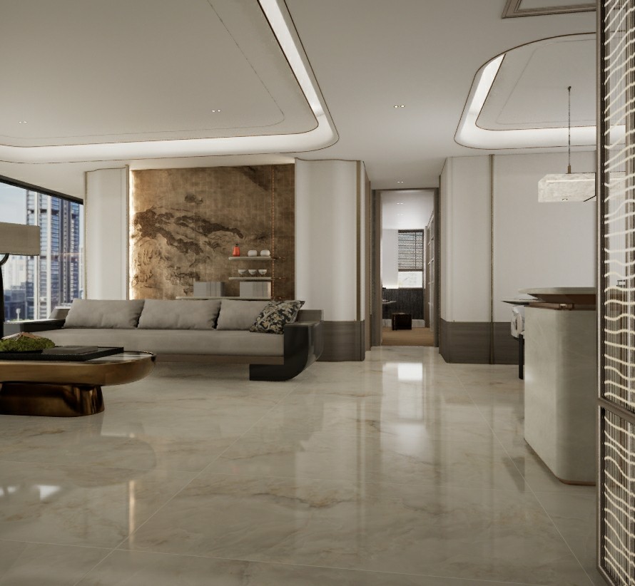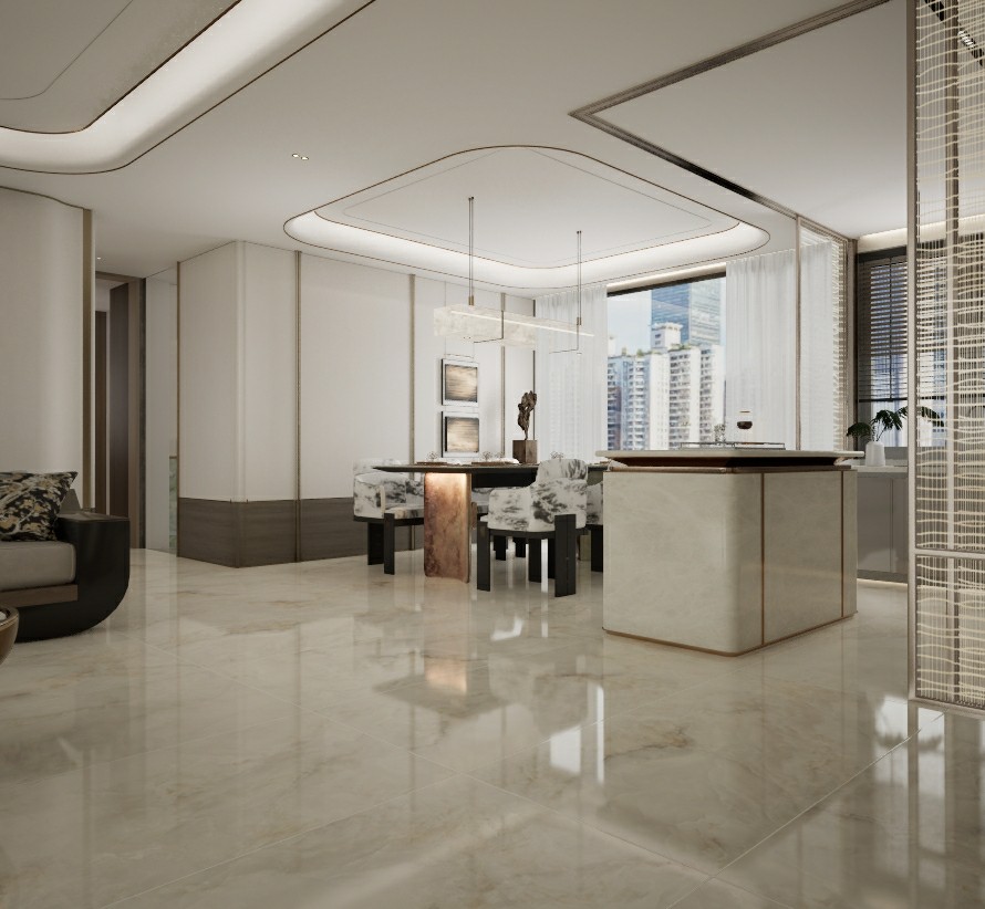 以高山白雪为设计灵感,白色基底搭配错落有致的山脉,既温柔高雅又沉静内敛,在无际的茫茫白雪中彰显不一样的魅力,白雪公主的纯洁柔和配上淡雅的自然脉络,令人叹为观止。