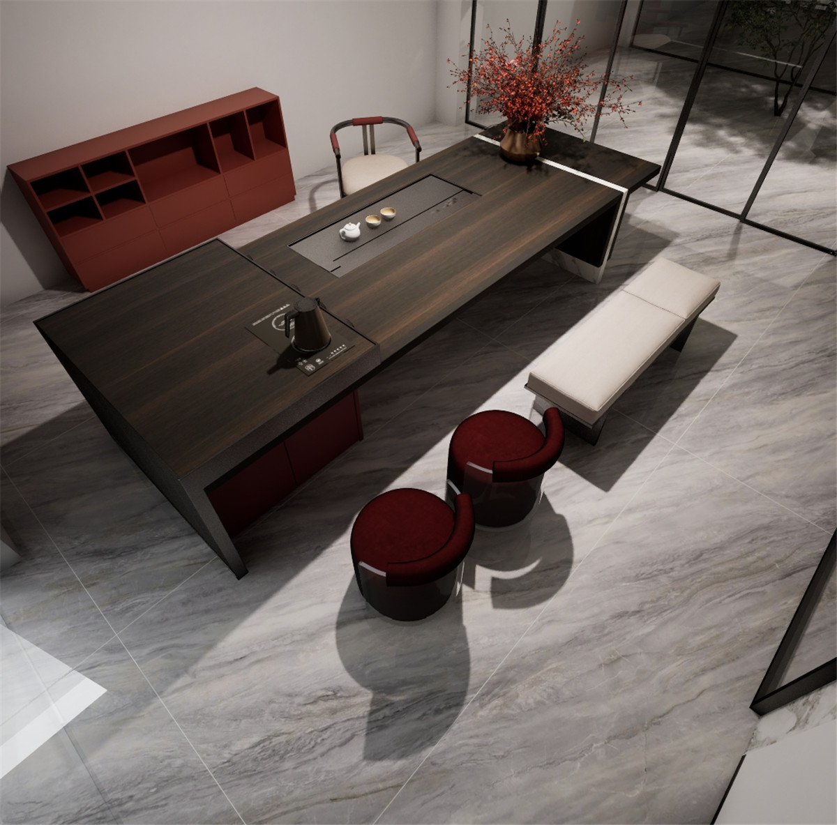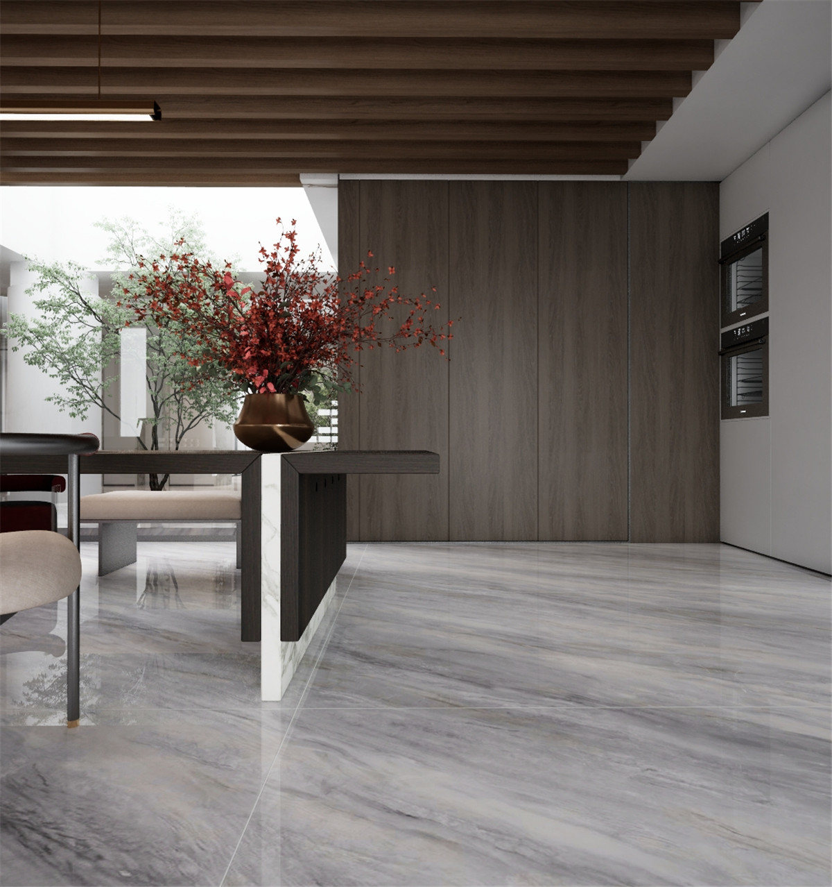 冷冽高级的灰色线性纹理如冰川裂隙般的自然流动感,将浩瀚自然浓缩于方寸,冰川裂隙在暮光中蜿蜒的脉络,冷玉质感下暗涌着能量,让空间瞬间化为充满灵性的自然秘境。