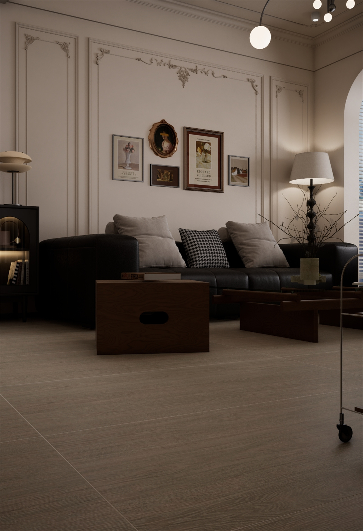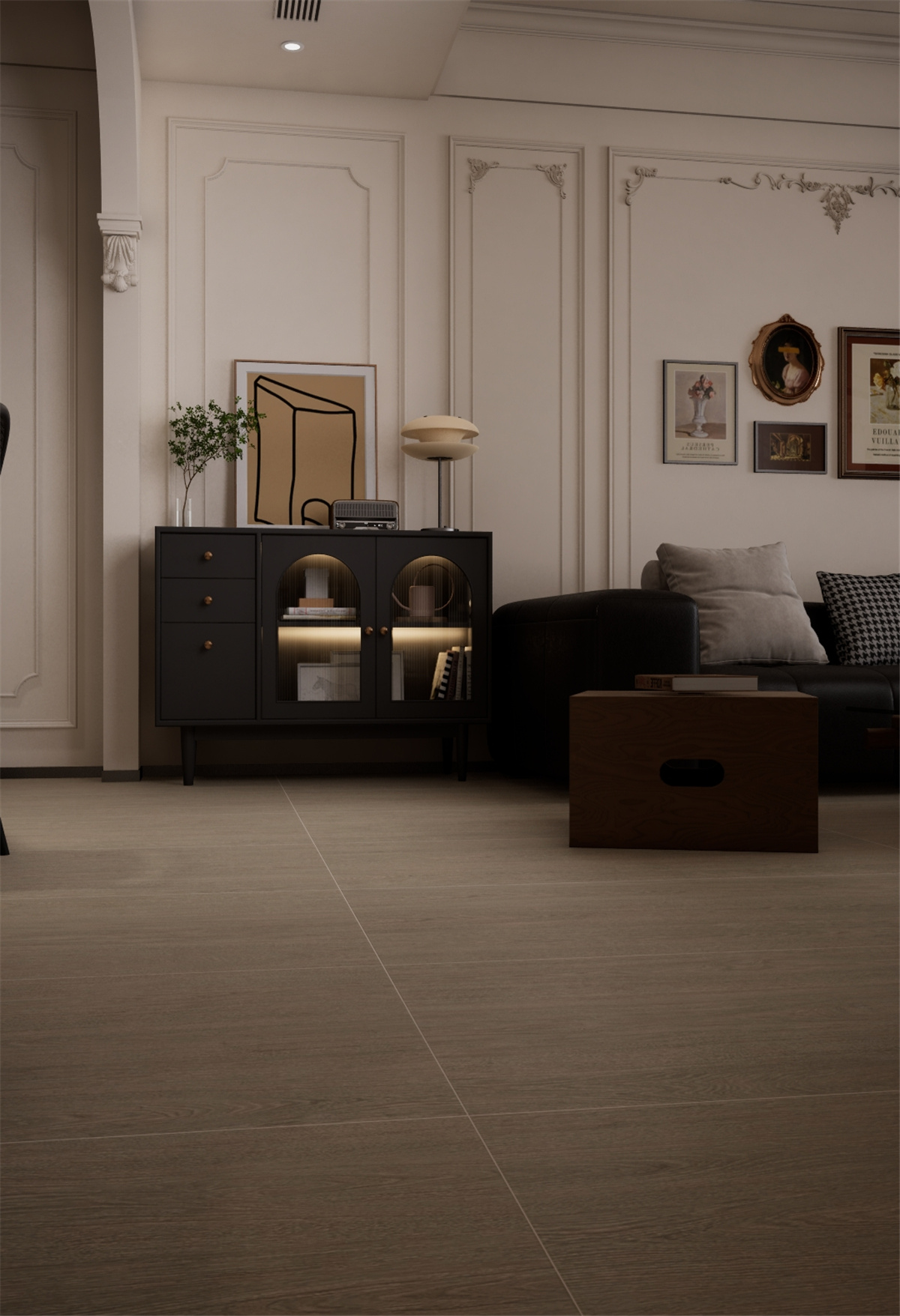 以灰橡的沉稳托举法式优雅,用矿物质感唤醒空间灵魂,每一寸铺贴都是对复古美学的当代诠释。