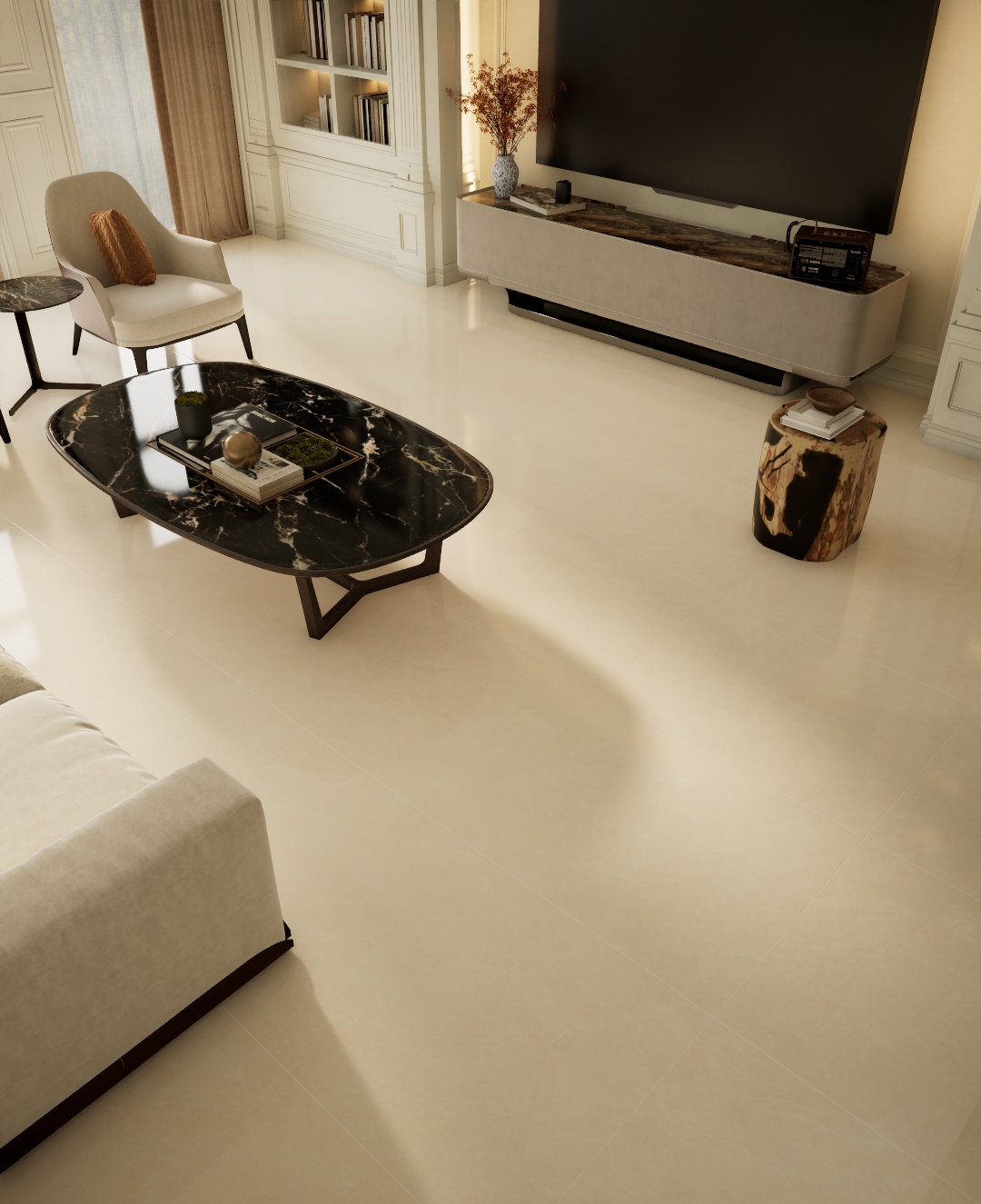 灵感源于地中海沿岸被朝霞浸染的象牙米黄砂岩。海浪与晨雾万年雕琢,岩层渐次沉淀出柔和的米黄色调,深色细纹如同象牙自然微裂的脉络,在细腻肌理中交织延展,如晨曦穿透薄雾的温柔笔触。