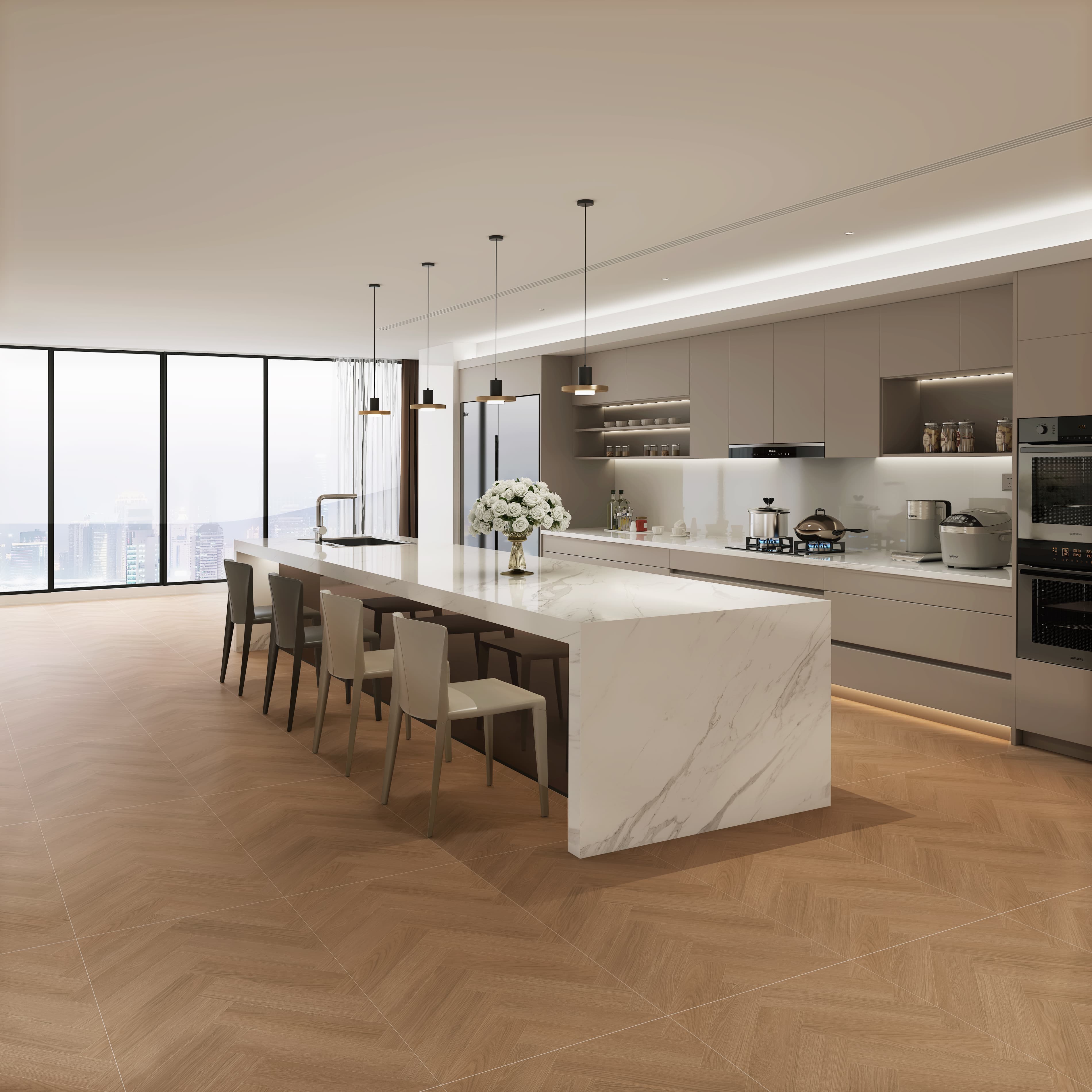多重工艺的叠加应用和色釉料的创新升级,让木纹砖的质感再上阶梯,纹理细节也被处理地更好,木纹、结节、年轮等细节都能逼真重现。