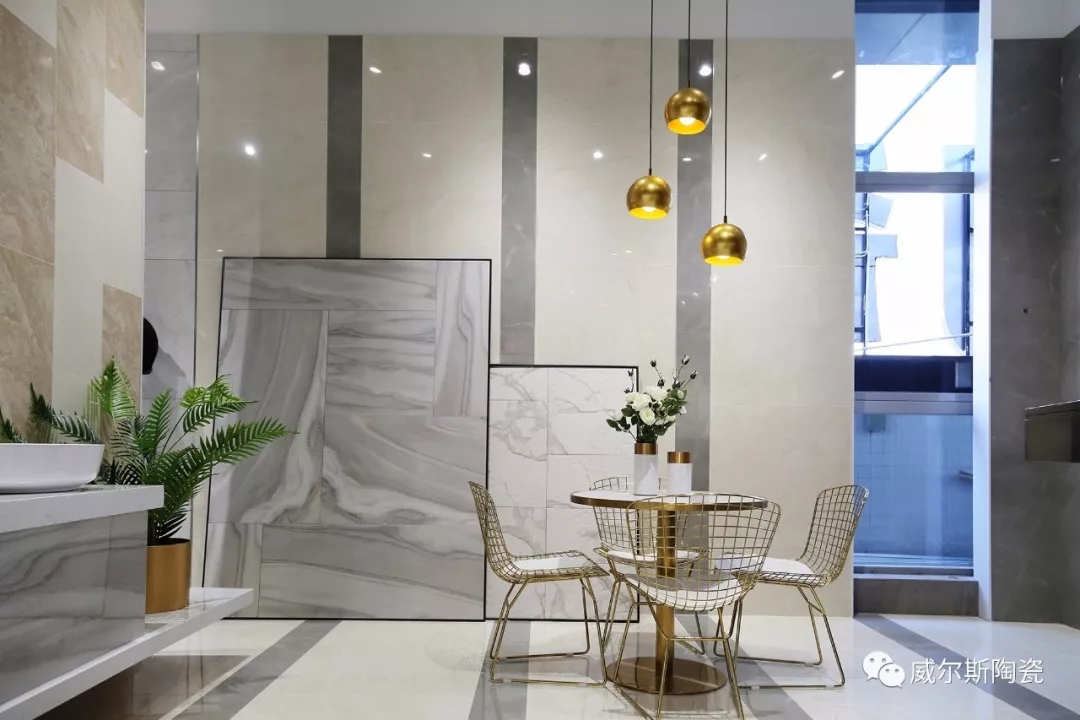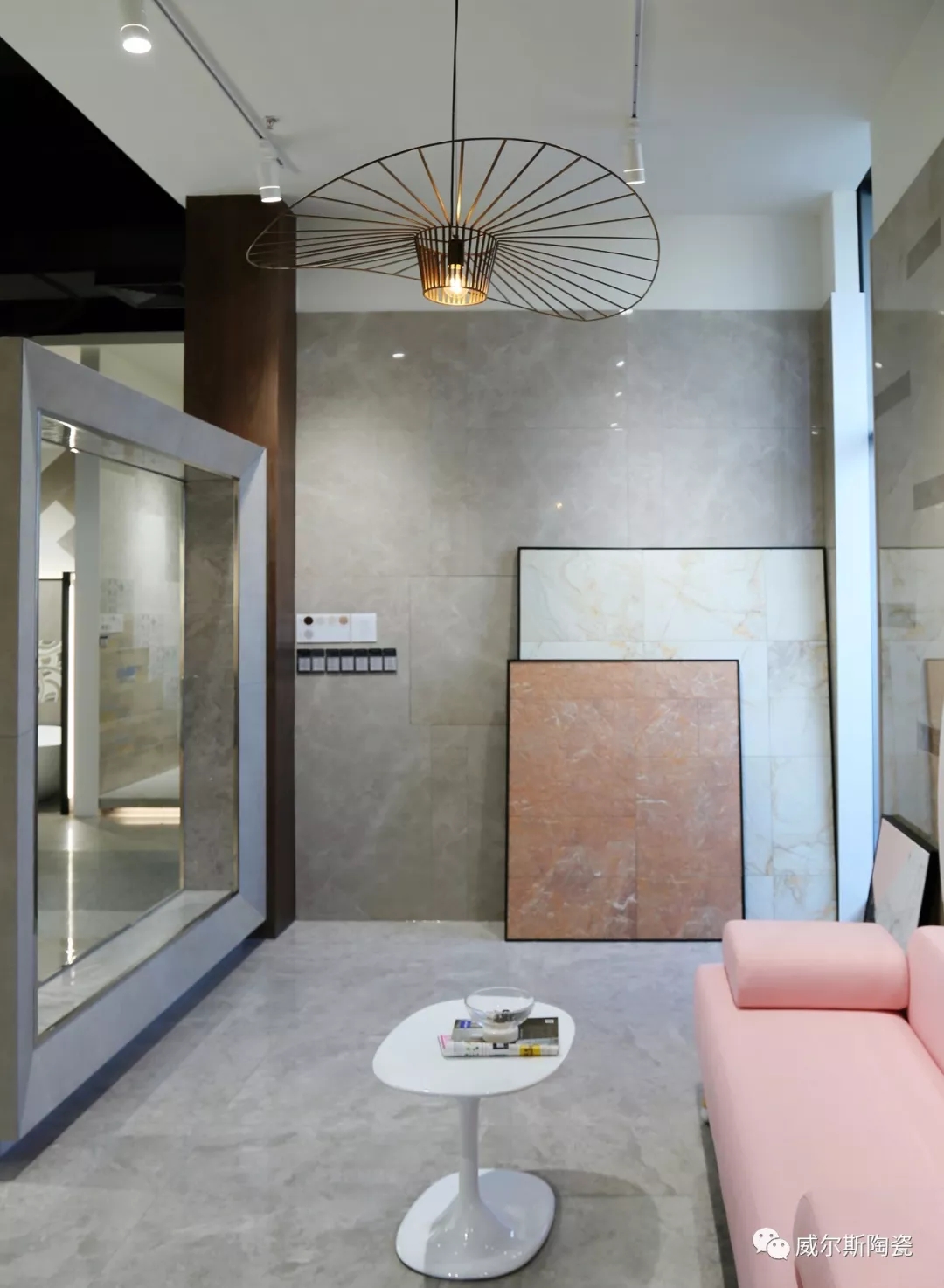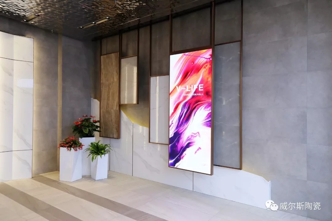 威尔斯全球营销中心,由国际设计大师操刀设计,坐落于佛山黄金中轴线,面积近1万平方。被媒体誉为行业最具黑科技、最时尚、最创新的国际范展厅。设计灵感来自威尼斯水城与知识殿堂的博物馆,大量使用石材及大理石瓷砖,返璞归真,完美演绎生活本质。设计手法大胆,整个空间追求色调统一,轻装修,重装饰,简约而不简单,透露生活的精致。瓷砖的空间运用上,和国际接轨,丢弃传统繁杂的水刀加工,还原瓷砖本色纹理,简单的铺贴,精美的装饰,让空间现代中透露奢华,精致中显现品位。“360威尔斯简介”系统、一块好砖的品质之旅互动体验系统、Smart智能选材中心、VR体验中心、最大的地毯砖(900*1800mm),创新亮点吸引行业内外人士频频参观。十五天倾力打造的V-LIFE概念馆,见证威尔斯新速度,掀开威尔斯陶瓷营销新篇章。