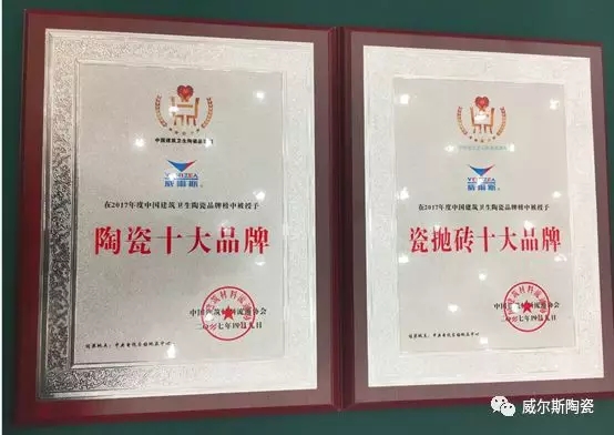 2017年,是威尔斯陶瓷丰收的一年。凭借多年来的品牌实力与用户口碑积累,威尔斯陶瓷始终深得行业内外的认可与支持,“全国消费者喜爱品牌”、“最佳产品原石”、“陶瓷十大品牌”、“瓷抛砖十大品牌”、“最具市场影响力品牌”等荣誉纷至沓来。“广东省重合同守信用企业”、“三星级绿色建材评价标识”、“全国建材技术革新奖”、“建材行业科技进步二等奖”、“工业设计大赛三等奖”等政府权威机构认定。威尔斯陶瓷坚定不移地把“科技领先、品质为本、服务至上”的经营宗旨贯彻落实到品牌发展的每一个细节里,赢得广泛的市场美誉度和专家领导的高度赞扬。