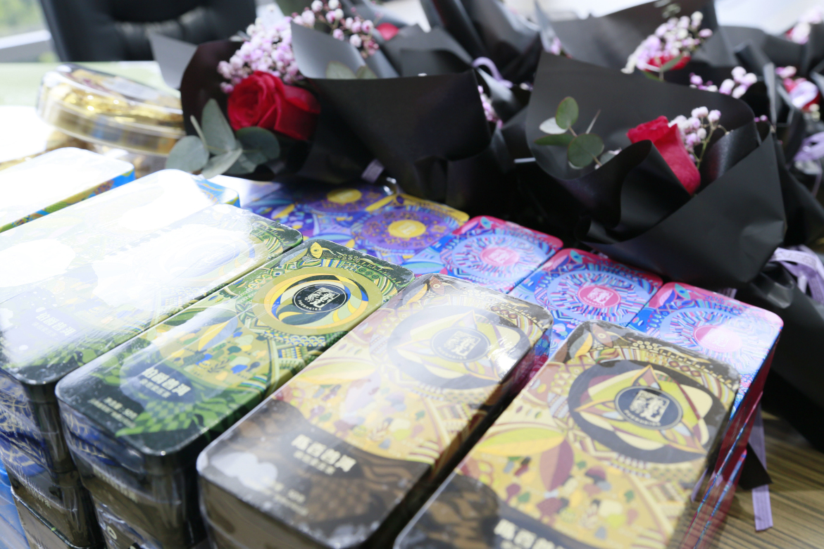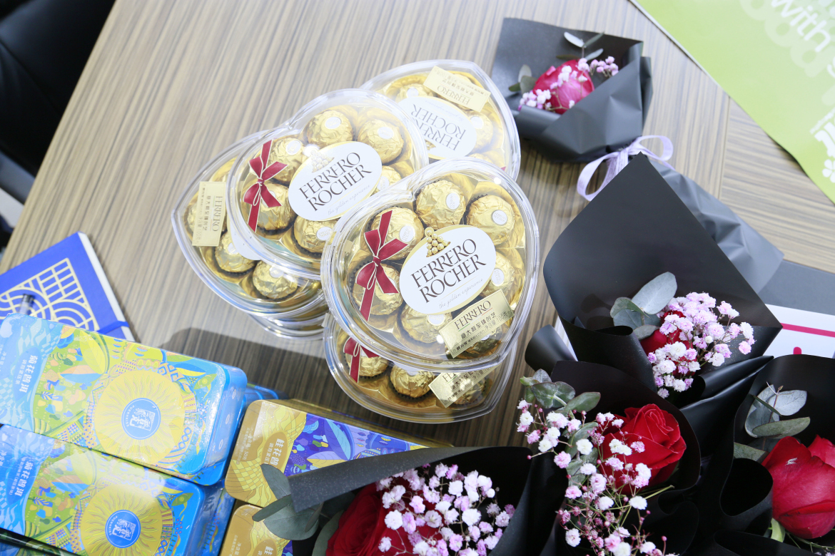 娇艳的玫瑰花+甜蜜的巧克力+精致茶盒