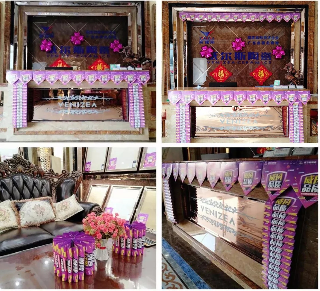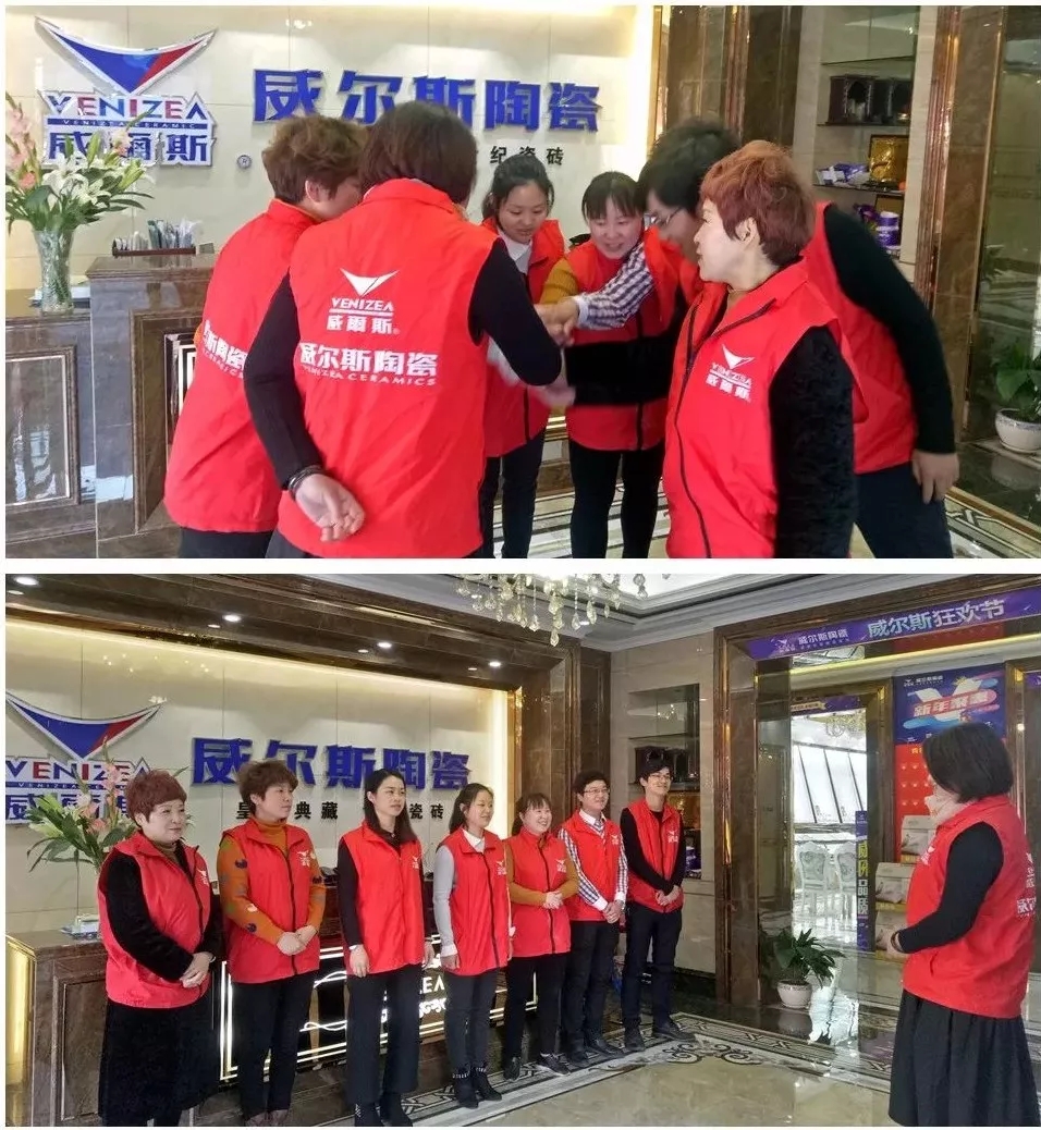 现代时尚的全新店面设计,河南郑州威尔斯陶瓷专卖店以国际化的风貌站在新起点,迎接新挑战。正值“威风品质”活动期,郑州威尔斯掌舵人孙总带领团队将店面氛围迅速布置起来。孙总还经常鼓励团队分享经验,全员参与,讲究实效和完善管理,精益求精!