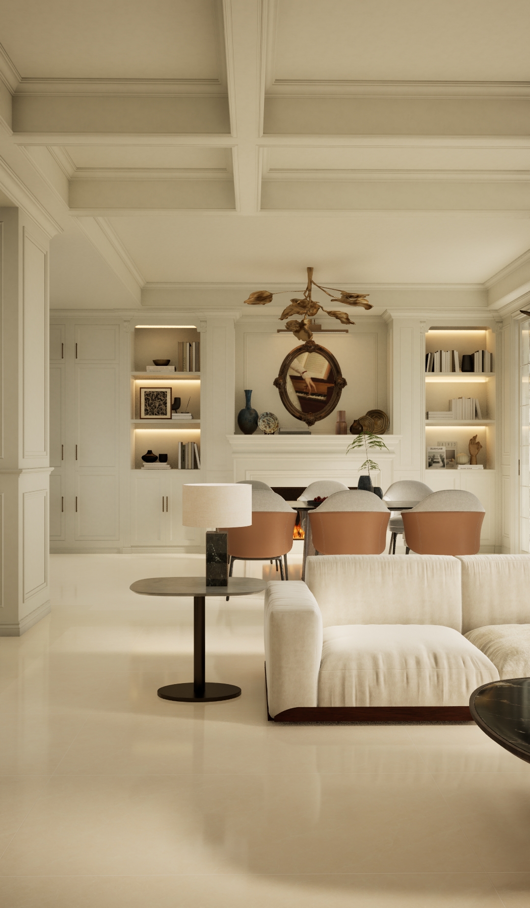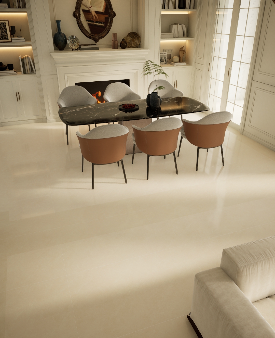 灵感源于地中海沿岸被朝霞浸染的象牙米黄砂岩。海浪与晨雾万年雕琢,岩层渐次沉淀出柔和的米黄色调,深色细纹如同象牙自然微裂的脉络,在细腻肌理中交织延展,如晨曦穿透薄雾的温柔笔触。