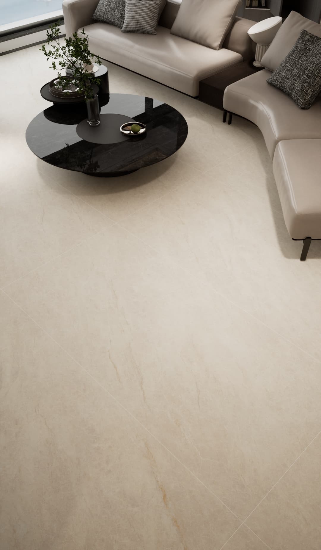 以柔和的米白色为基调,纹理如自然石材的细腻肌理,浅淡的纹路似山水晕染,质朴且富有质感。铺贴后呈现出温润雅致的视觉效果,为空间营造出静谧舒适的氛围,是打造现代简约或新中式风格家居的理想选择,让家在纯净中尽显自然韵味。